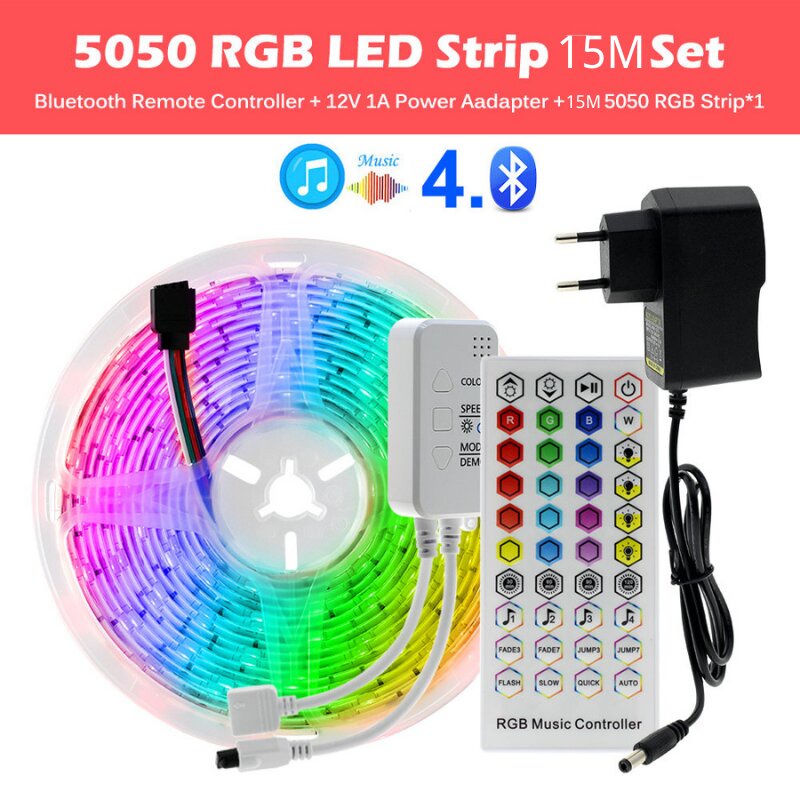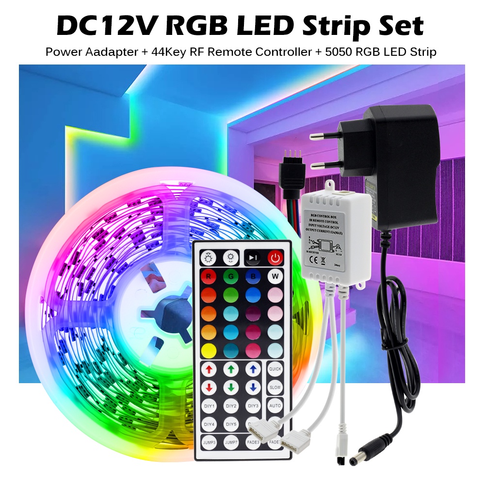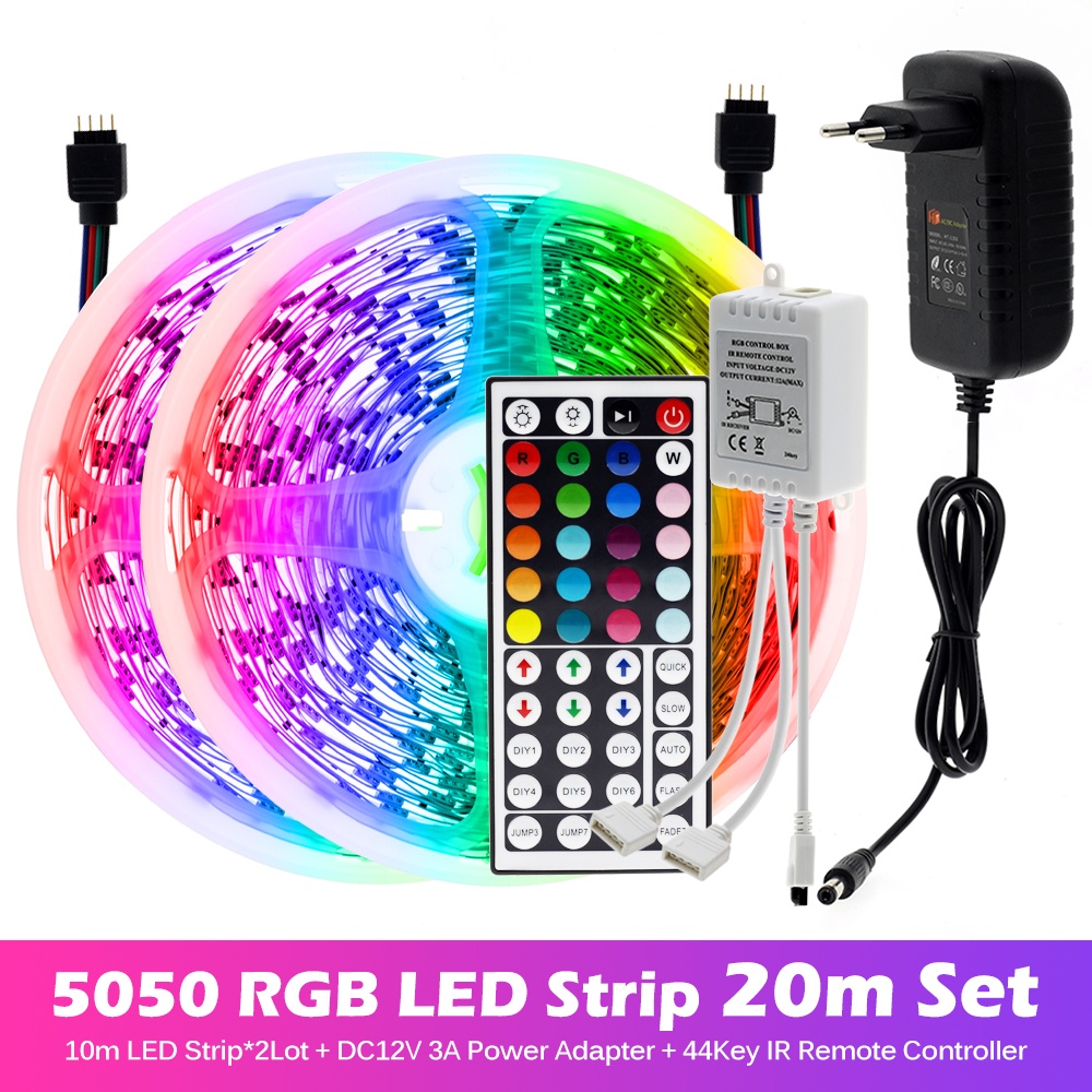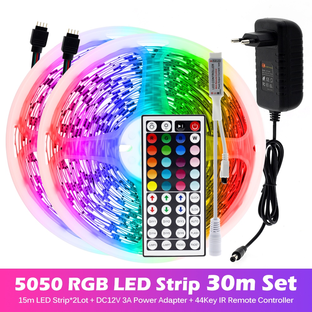 สายไฟ LED ไฟเส้น 5050 5ม. 10ม. 15ม. 20ม. 30ม ไฟ Rgb ตกแต่งห้อง + รีโมต 44 ปุ่ม IR Dc12V ไฟแต่งห้อง