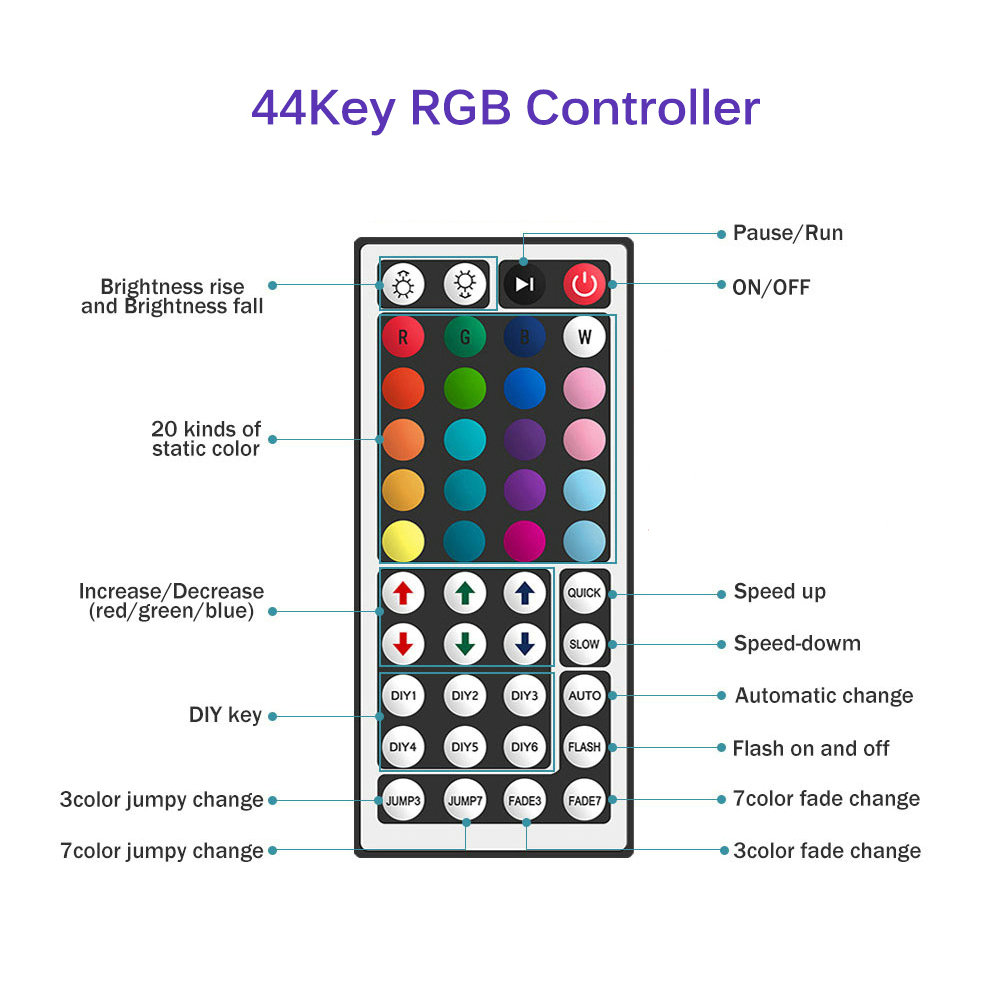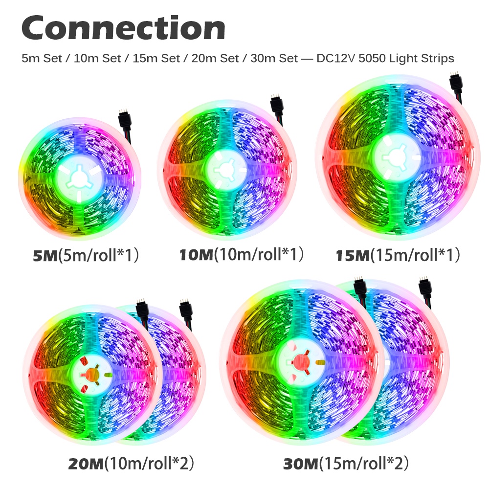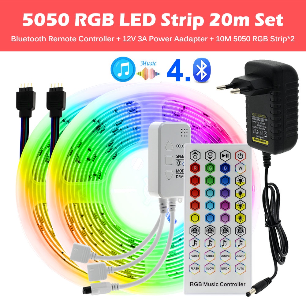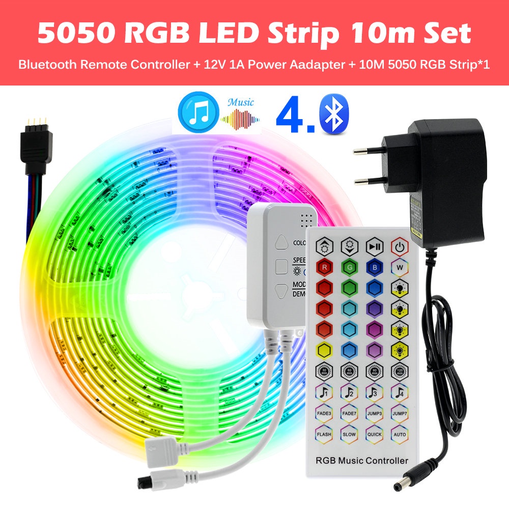 สายไฟ LED ไฟเส้น 5050 5ม. 10ม. 15ม. 20ม. 30ม ไฟ Rgb ตกแต่งห้อง + รีโมต 44 ปุ่ม IR Dc12V ไฟแต่งห้อง