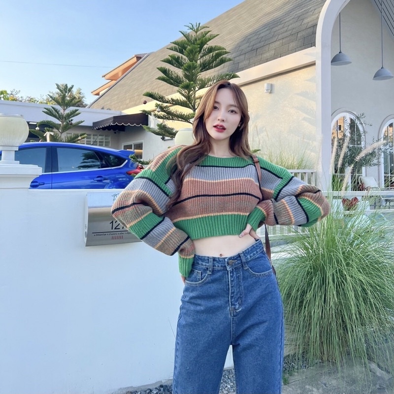 พร้อมส่ง Holly Sweater เสื้อไหมพรมลายทาง (Sw-020)