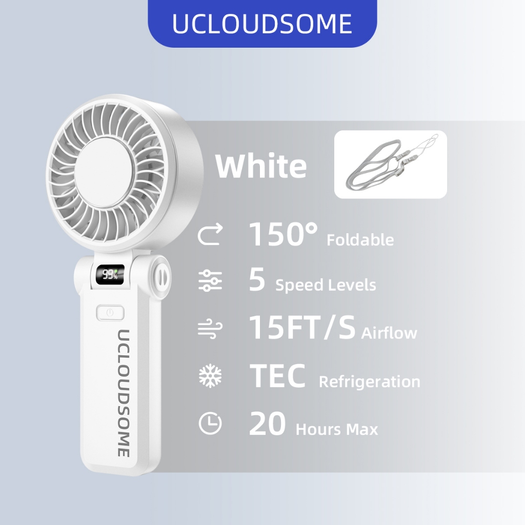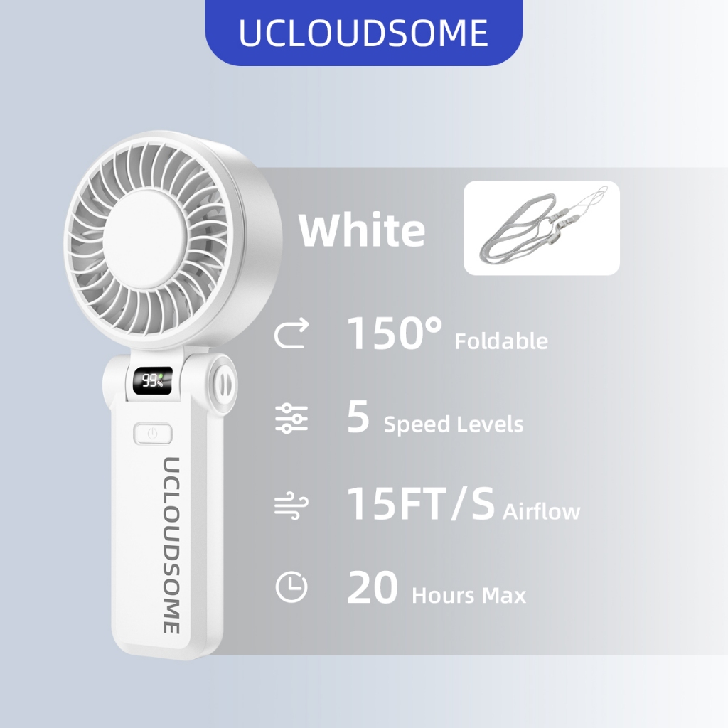 UCLOUDSOME พัดลมมือถือ พัดลมมินิ พัดลมทําความเย็นแบบพกพา 5000mAh แบบพับได้ ทํางานเงียบ 5 เกียร์ลมแรง