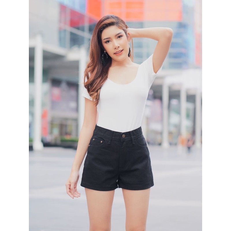 🔥ขายดีมาก ไซส์S~42 กางเกงยีนส์ขาสั้นเอวสูงผ้าไม่ยืด สาวอวบใส่ได้