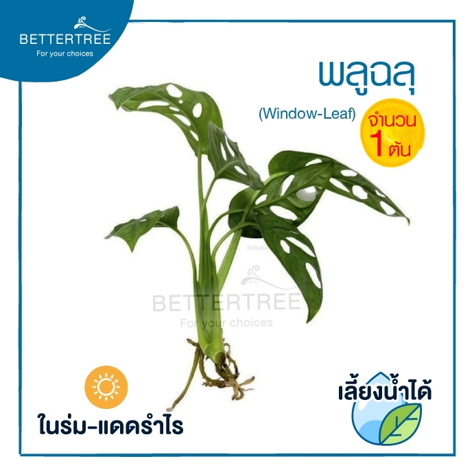 พลูฉลุ (จำนวน 1 ต้น) ต้นไม้ฟอกอากาศ ไม้น้ำ monstera adansonii พลูด่าง