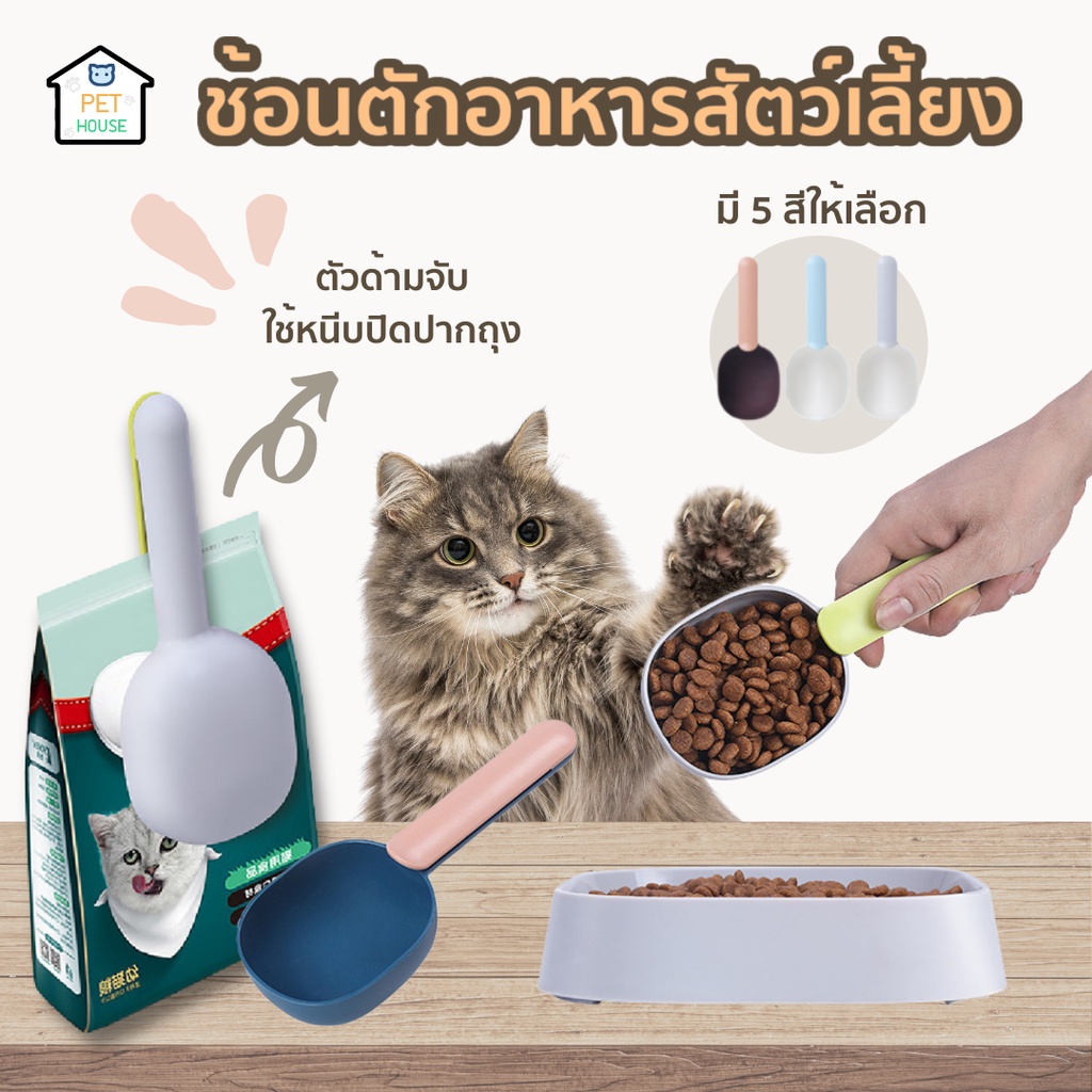 [🔥ลดเพิ่ม50.- ใส่โค้ดAPR8QU]😺 PET HOUSE ช้อนตักอาหารสัตว์เลี้ยง ที่ตักอาหาร พร้อมด้ามจับแบบคลิปล็อค ด้ามหนีบถุง
