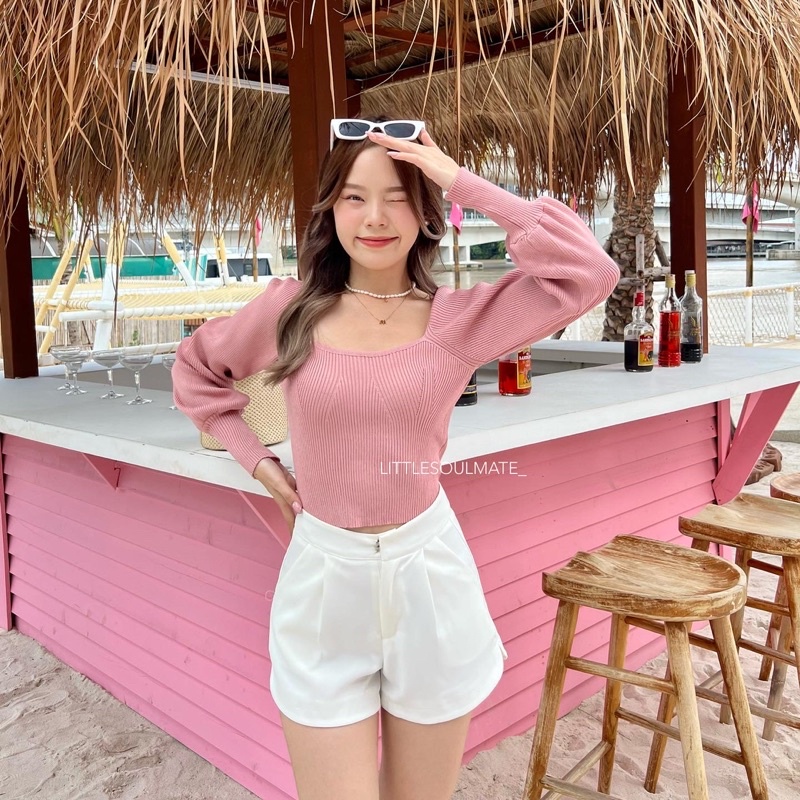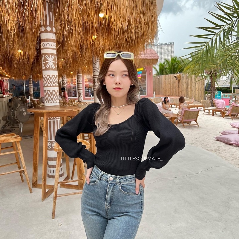littlesoulmate เสื้อเว้าอกแขนพอง เข้ารูปหุ่นดีมากเว่อ ผ้าไหมพรมหนาเนื้อนิ่ม(girly balloon)