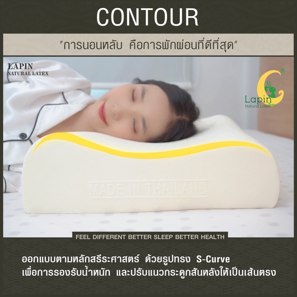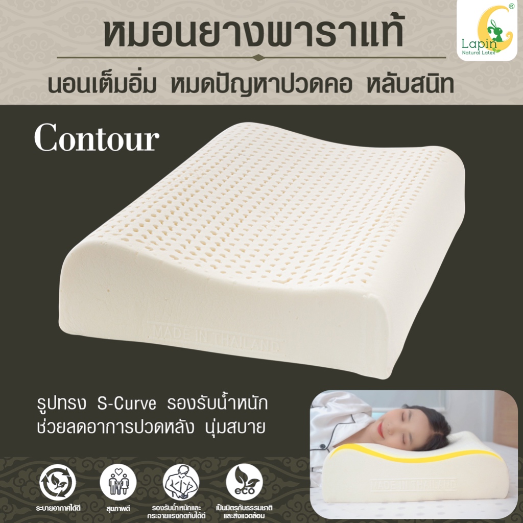 หมอนยางพาราแท้100% (LAPIN)⚡️ลดจาก 1,890 เหลือเพียง 990⚡️รุ่น คอนทัวร์ (รุ่นนุ่มสบายเน้นรองบ่ากระดูก)