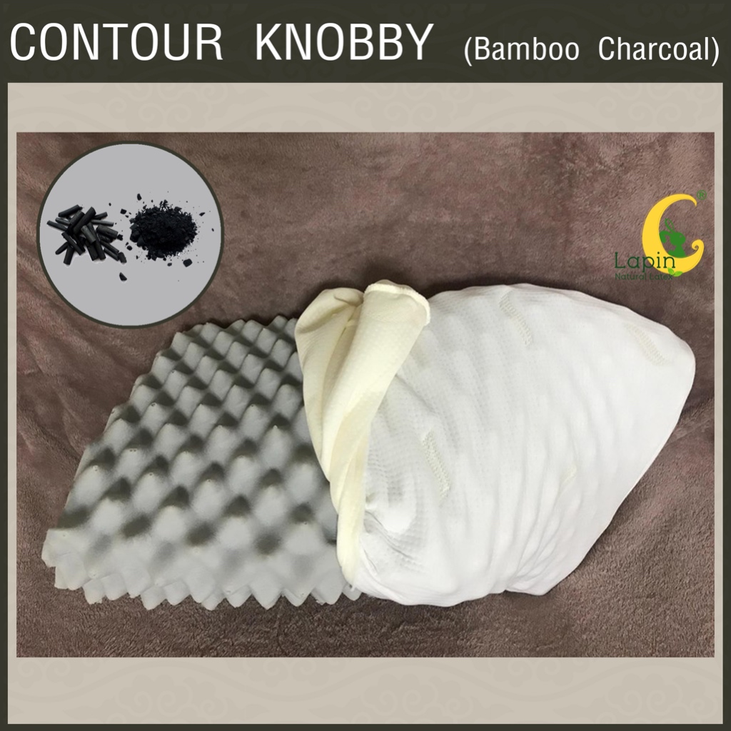 หมอนยางพาราแท้100%(LAPIN)⚡️ลดจาก 2,490 เหลือเพียง 1,100⚡️รุ่นคอนทัวร์น็อบบี้ผสมชาร์โคล ระบายอากาศดี