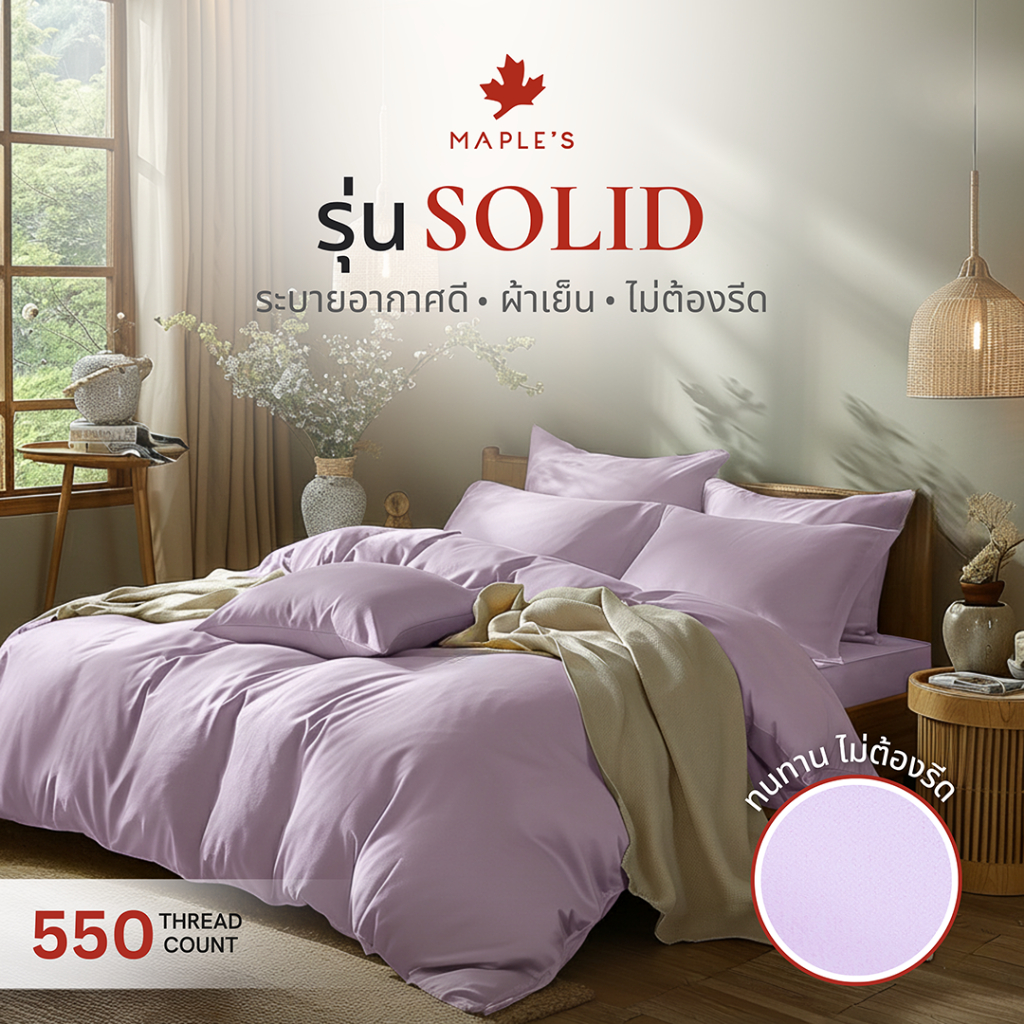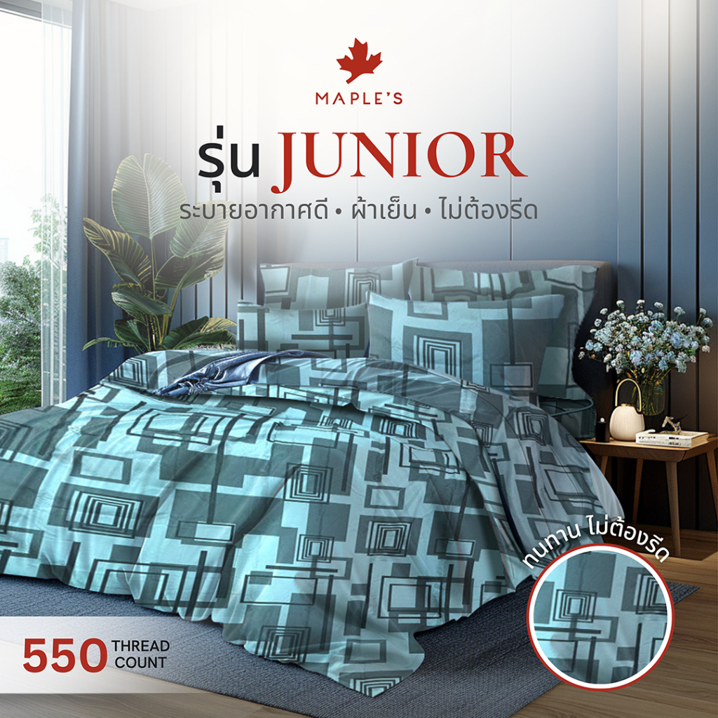 MAPLE'S ผ้าปู7ฟุต 550เส้น รัดมุม ใช้กับ3.5ฟุต2เตียงต่อกันได้ สูง 6-14นิ้ว กันไรฝุ่น ผ้าปุที่นอน