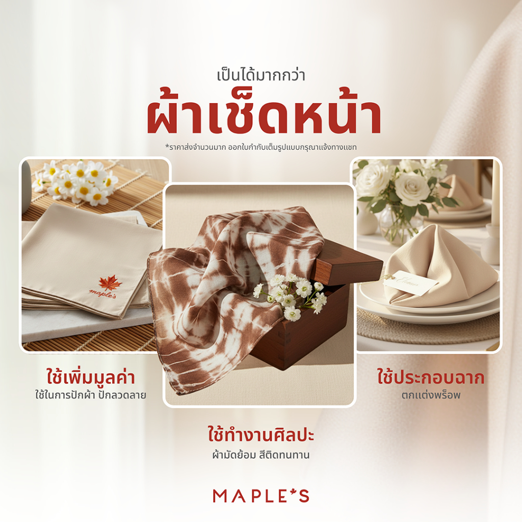 MAPLE'S ผ้าเช็ดหน้า กันไรฝุ่น ผ้าเช็ดหน้าเด็ก ผืนใหญ่ ปัก โพกหัว วินเทจ อนุบาล ผูกผม handkerchief