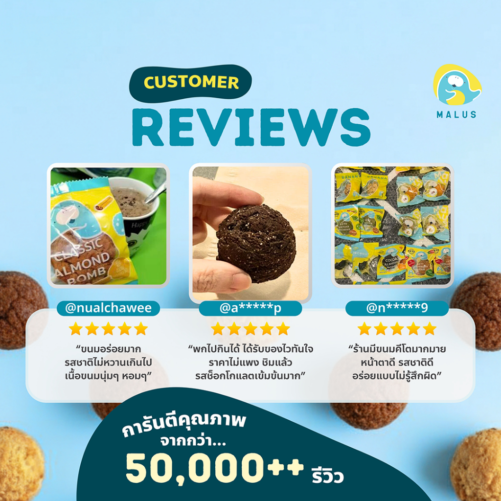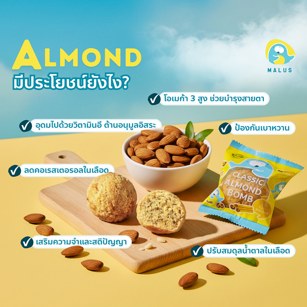 Malus Keto คีโต อัลมอนด์บอมบ์ ไร้แป้ง ไร้นํ้าตาล กลูเตนฟรี No Sugar No Flour Almond Bomb ขนมคลีน