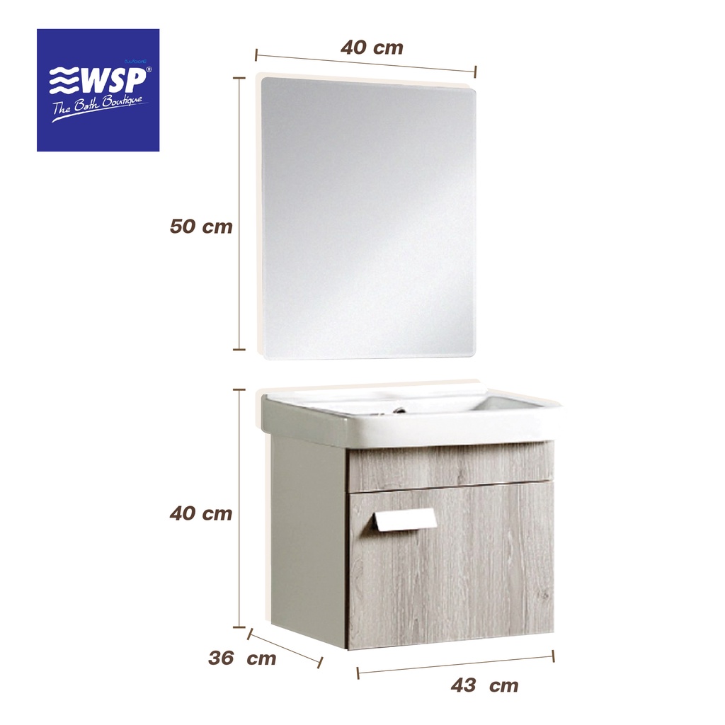 [🔥สุดคุ้ม] WSP BSCC-136 ชุดอ่าง + เคาน์เตอร์ + กระจก (ไม่รวมอุปกรณ์อ่างอื่นๆ) สี Valetta Grey