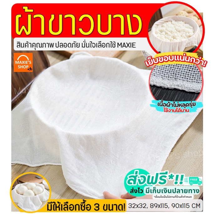 🔥ส่งฟรี🔥 ผ้าขาวบาง MAXIE (มีให้เลือก3ขนาด)เย็บริมอย่างดี! ผ้ากรอง ผ้ารองนึ่ง