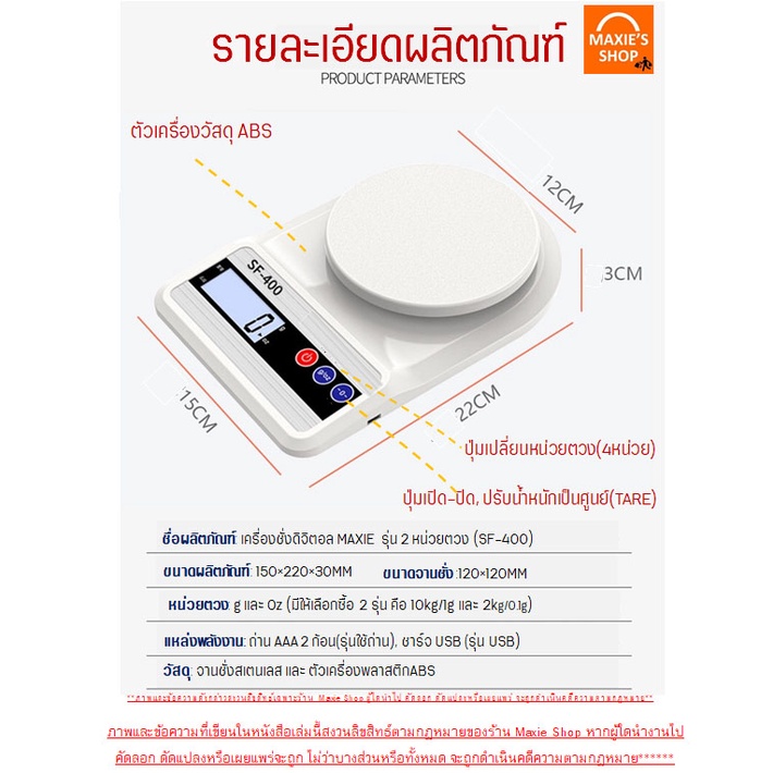 🔥ส่งฟรี🔥 เครื่องชั่งดิจิตอล MAXIE ใหม่!10กิโล/2หน่วยตวง รุ่นใช้ถ่าน(แถมฟรี) เครื่องชั่งอาหาร ตาชั่งดิจิตอล เครื่องชั่ง