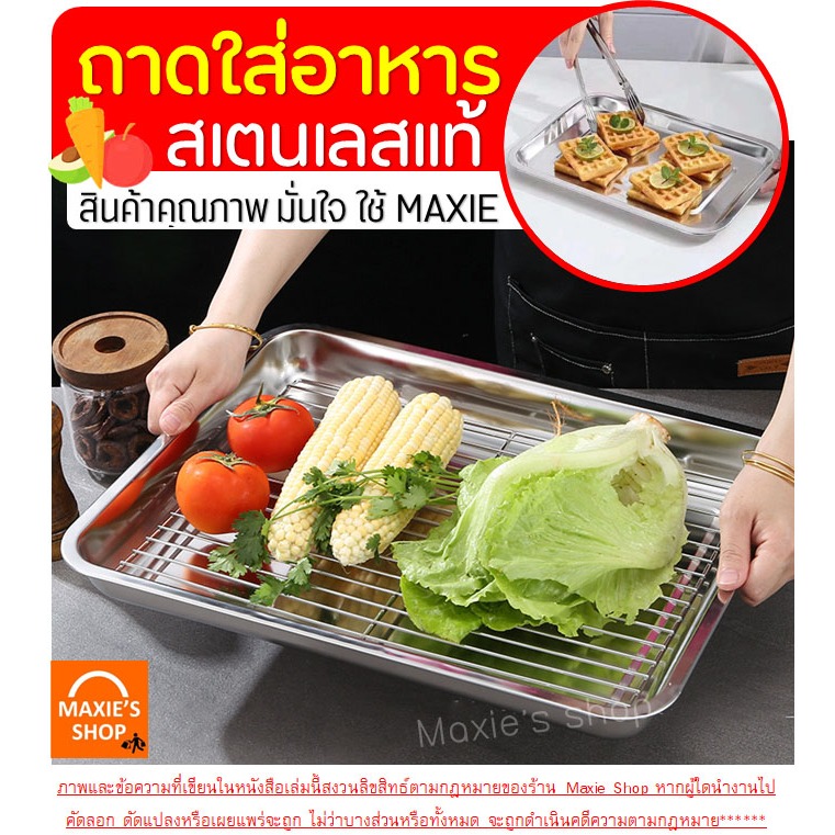 🔥ส่งฟรี🔥 ถาดสแตนเลส พร้อมตะแกรงกรอง MAXIE ถาดใส่อาหาร ถาดใส่ขนม ถาดเสิร์ฟ