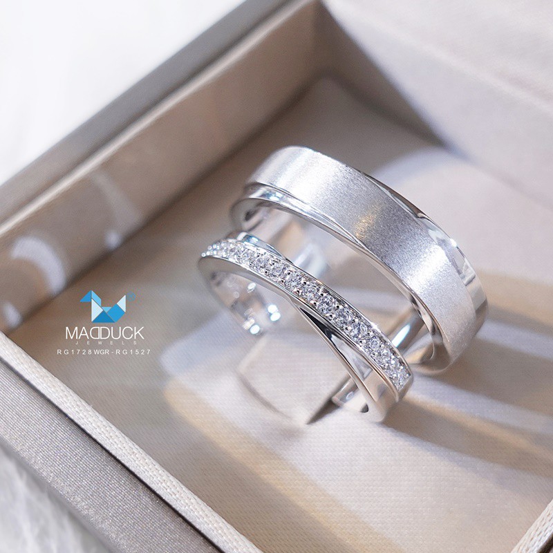 Madduckjewels แหวนเงินแท้ เพชร CZ ชุบโรเดียม RG1728WGR-RG1527