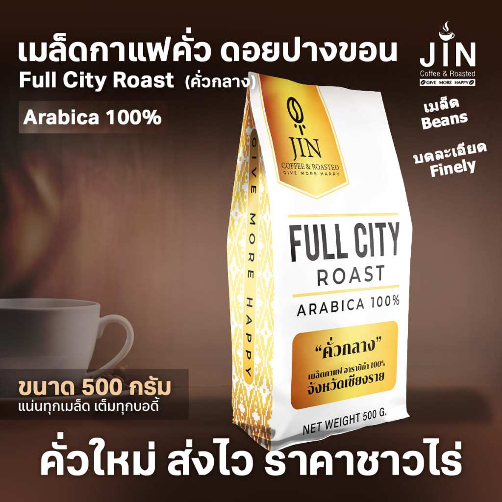 PK เมล็ดก าแฟ Full City Roast "คั่วกลาง" ขนาด 500g. ”ดอยปางขอน” + ส่งไว คั่วใหม่