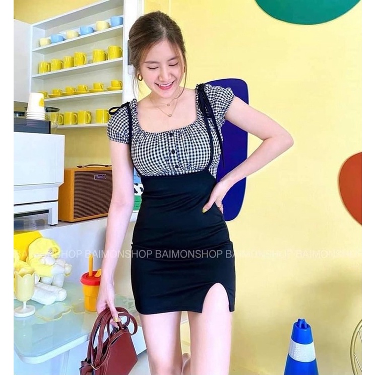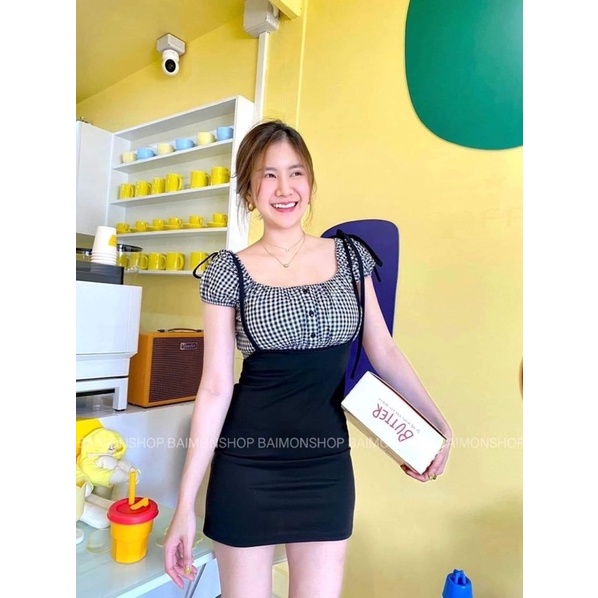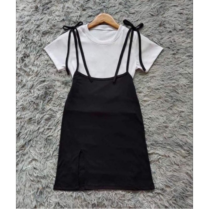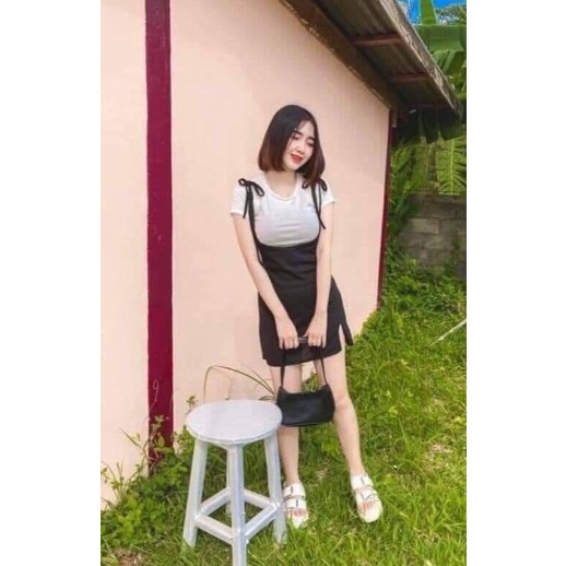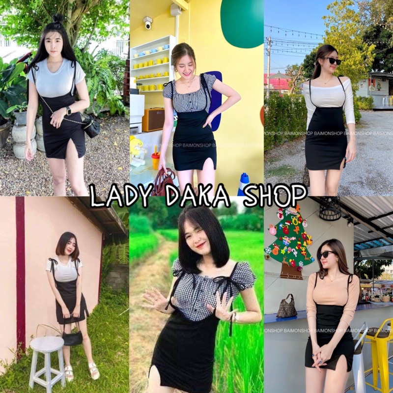 🧡LADY DAKA SHOP🧡 เซท2ชิ้น เสื้อ+เอี๊ยม กระโปรงผูกไหล่ แหวกหน้าเบาๆ