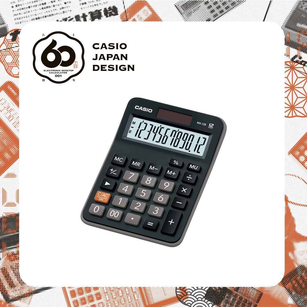 Casio Calculator เครื่องคิดเลข คาสิโอ รุ่น MX-12B แบบตั้งโต๊ะสีสัน ขนาดกะทัดรัด 12 หลัก สีดำ