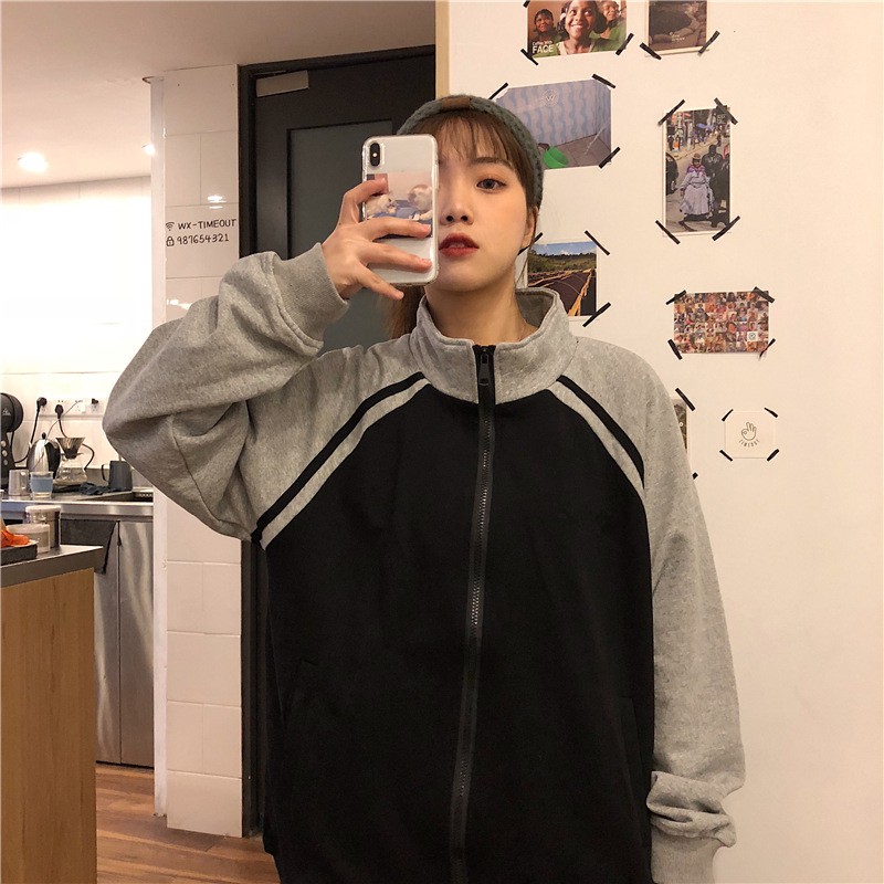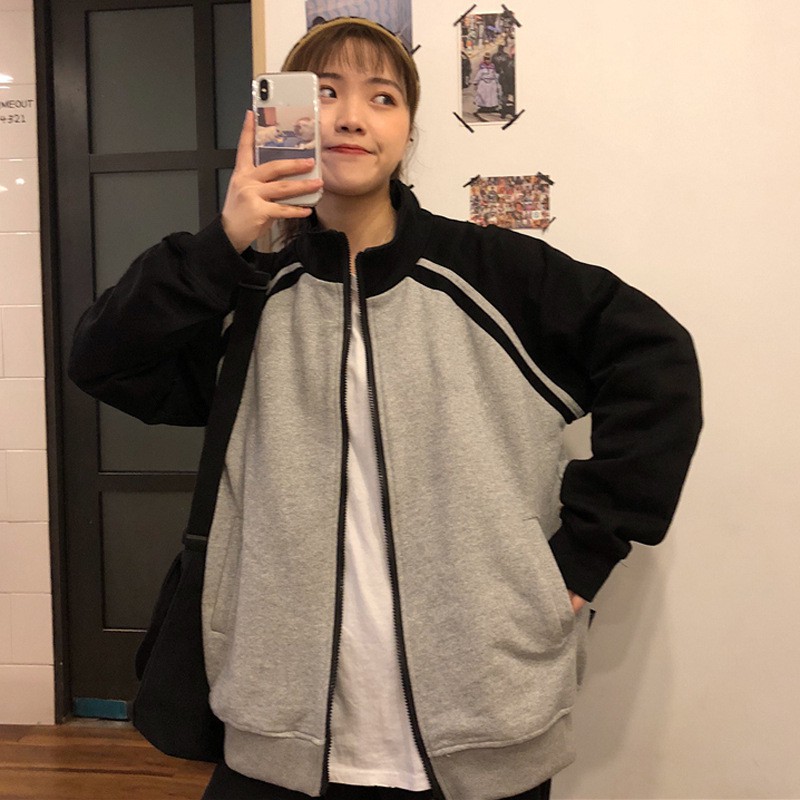 เสื้อกันหนาวผู้หญิง เสื้อคลุมแขนยาว แบบมีซิป ผ้าสำลี ใส่สบาย