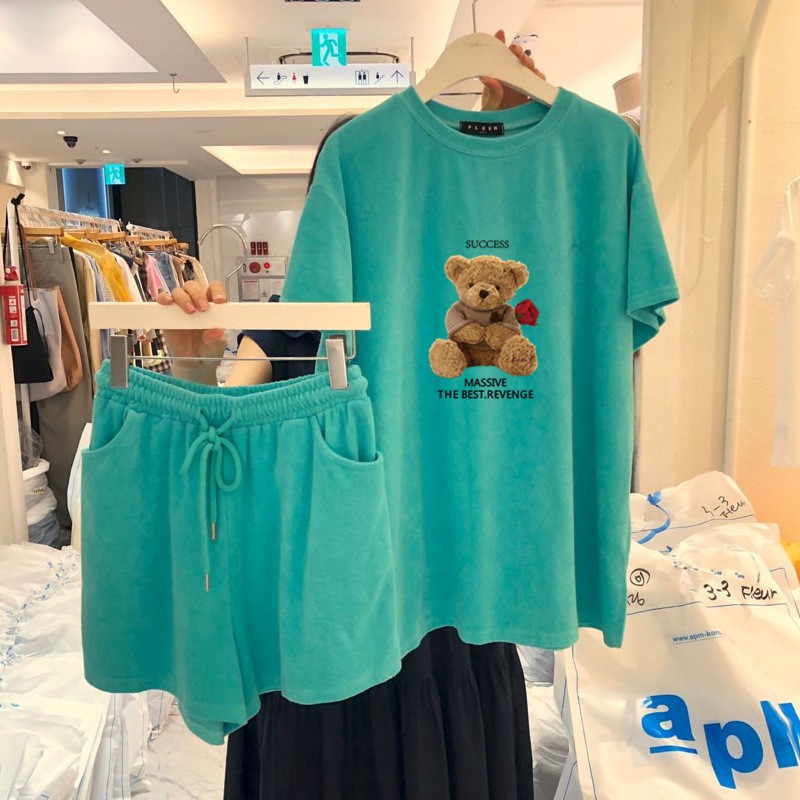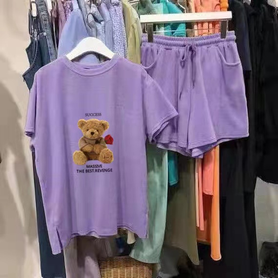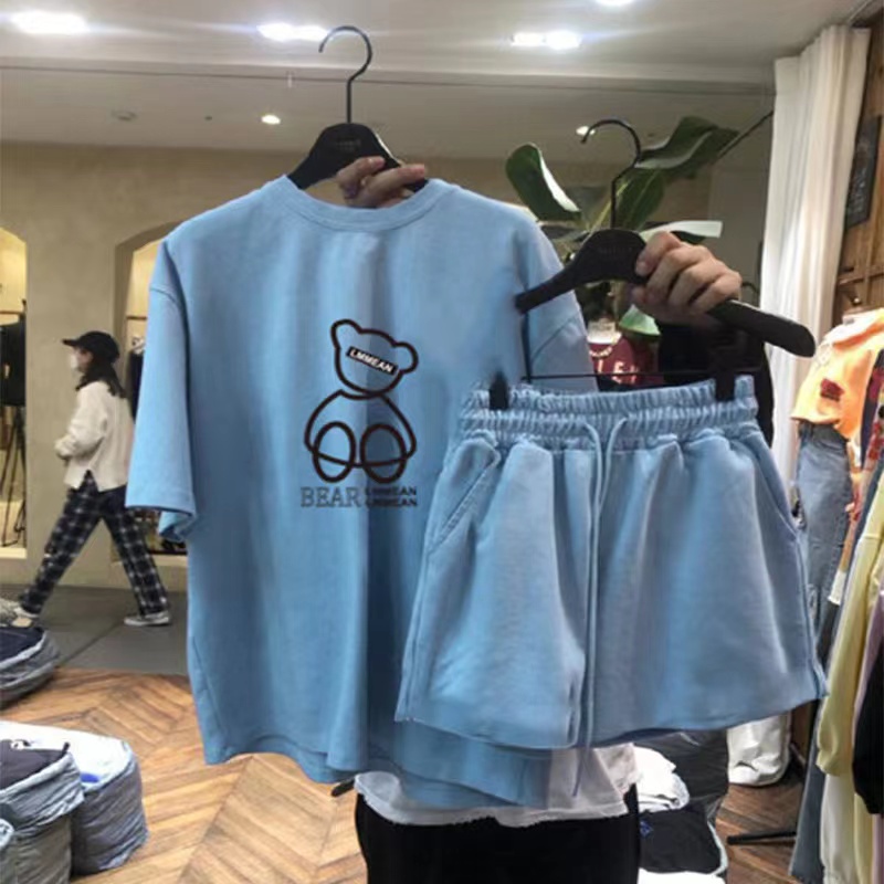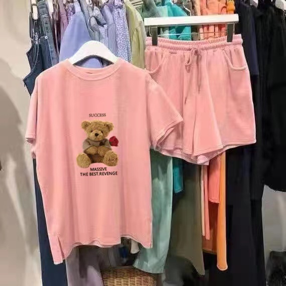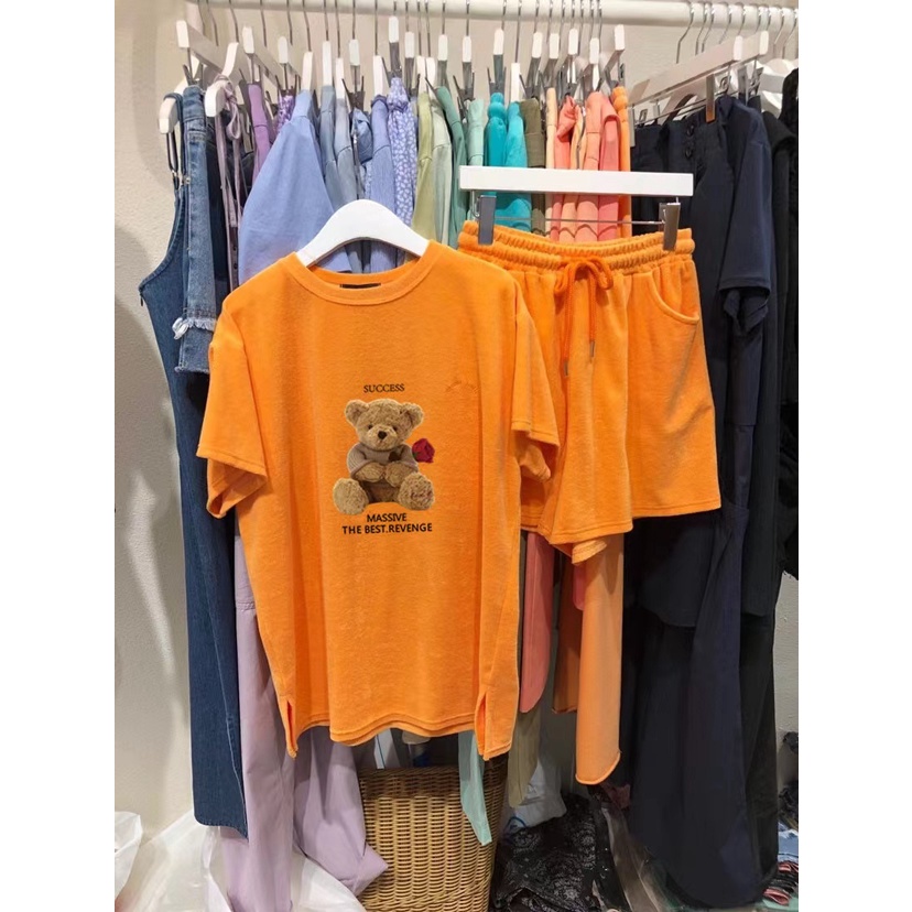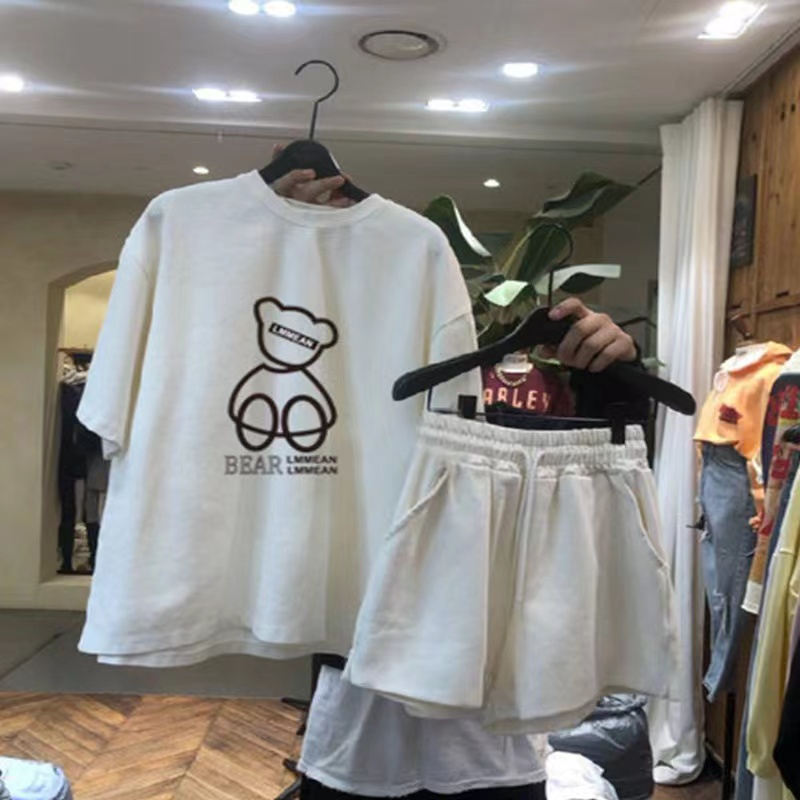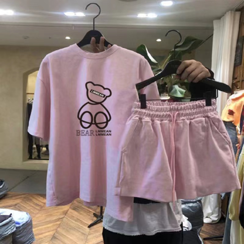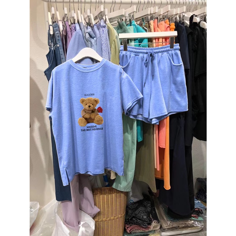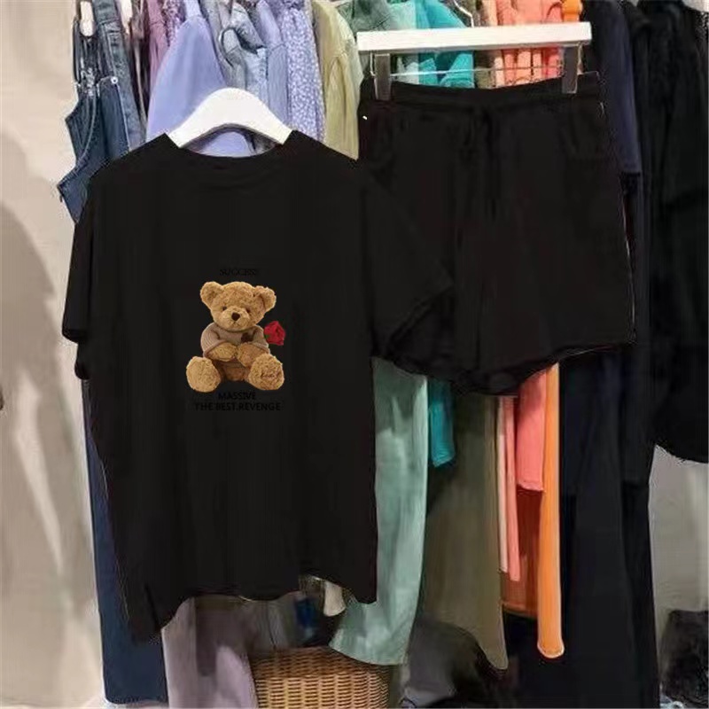 [พร้อมส่งจากไทย]ชุดลำลองแฟชั่นผู้หญิง เซ็ต2ชิ้น เสื้อยืดแขนสั้น ลายหมี น่ารัก+กางเกงขาสั้น สไตส์เกาหลี