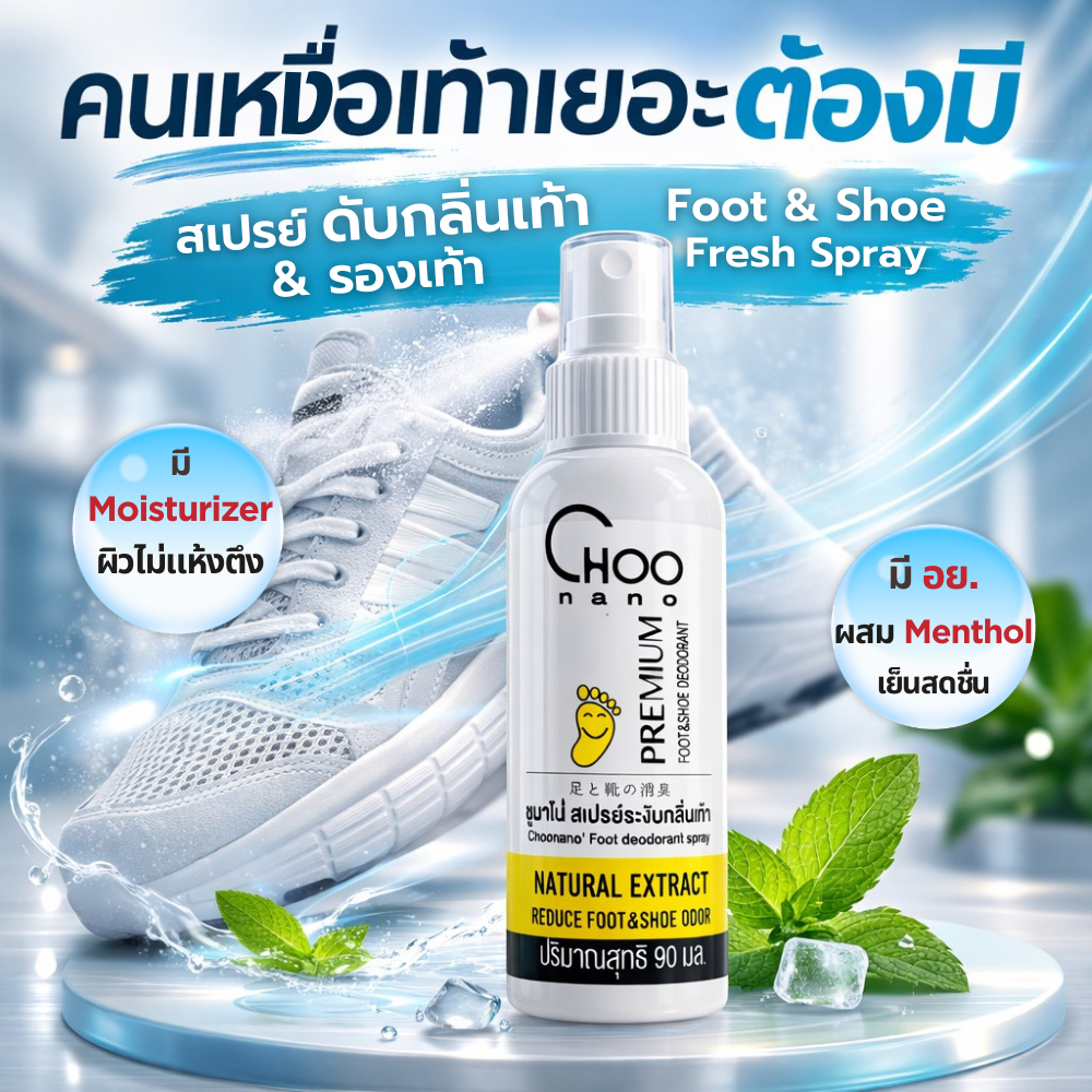 Choonano สเปรย์ดับกลิ่นเท้า กลิ่นรองเท้าไม่พึงประสงค์ 24 ชม. ลดเหงื่อ 90 มล. (DEO)