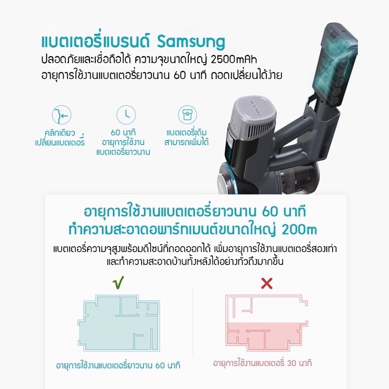 Redkey F10 เครื่องดูดฝุ่นไร้สาย ถอดแบตได้ เปลี่ยนหัวดูดได้ พับได้ แรงดูด 23Kpa 400W Smart Folding Vacuum cleaner เครื่องดูดฝุ่นในรถ