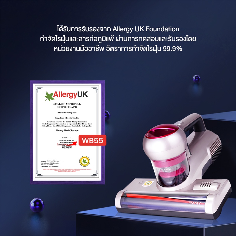 Jimmy JV11 WB55 เครื่องดูดไรฝุ่น แบบมีสาย มีแสง UV เครื่องดูดไรฝุ่นที่นอน เครื่องกำจัดไรฝุ่น