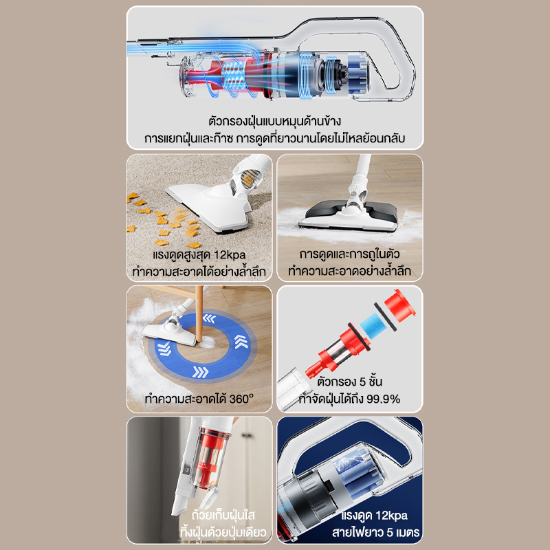 DEERMA DX700 2in1 Verticalhand-held 2 in 1 เครี่องดูดฝุ่น 15000 pa เปลี่ยนหัวได้ แบบมีสาย เครื่องดูดฝุ่นในรถ