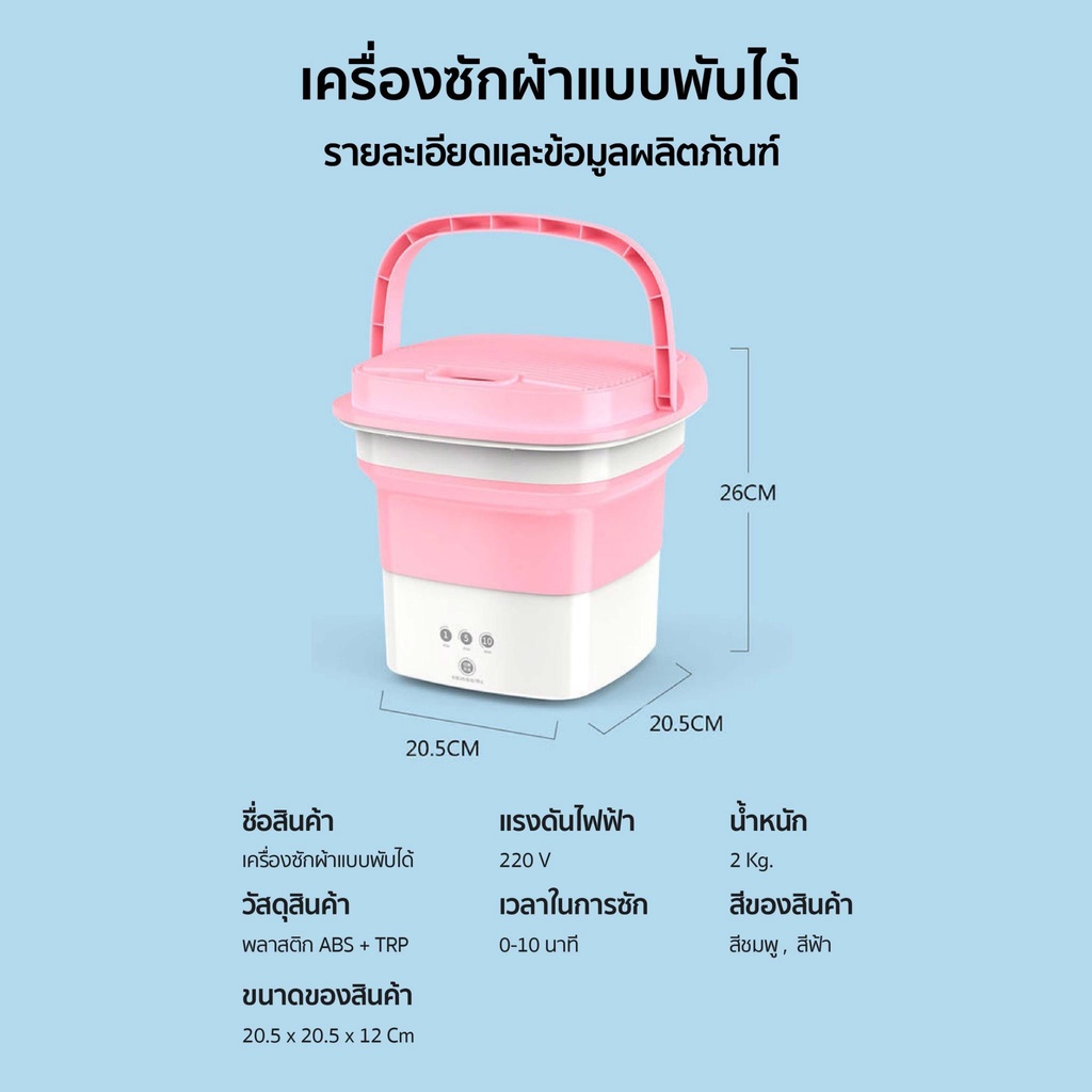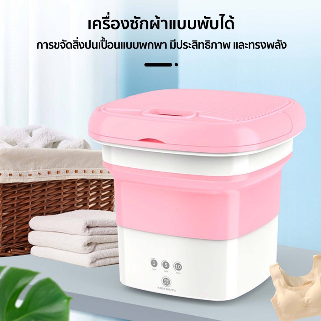 ZHAXI เครื่ องซักผ้าพับได้ 6.5L พกพา เล็ก แถมตะกร้าปั้นแห้ง+ท่อน้ำทิ้ง Folding Mini Washing