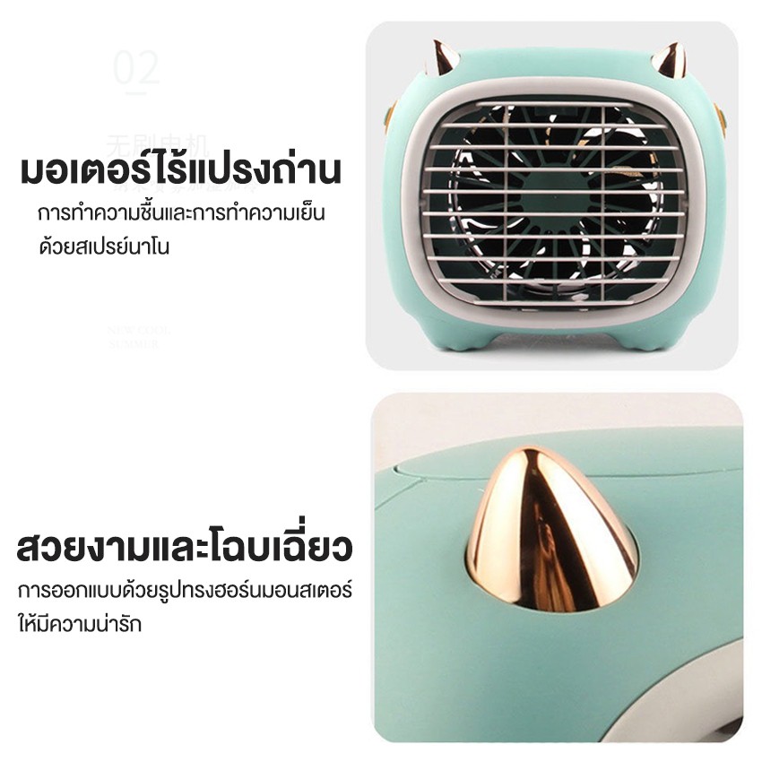 พัดลมไอ เย็นพกพา Monster Air Cooler แอร์มินิ แอร์พกพา USB แอร์ตั้งโต๊ะ พัดลมตั้งโต๊ะ Spray Cold Fan