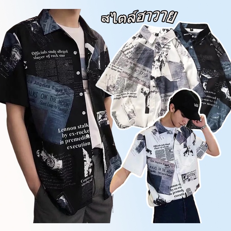 เทศกาลสงกรานต์ เสื้อเชิ้ตทรงหลวมสไตล์ฮาวายสำหรับผู้ชายยอดนิยม