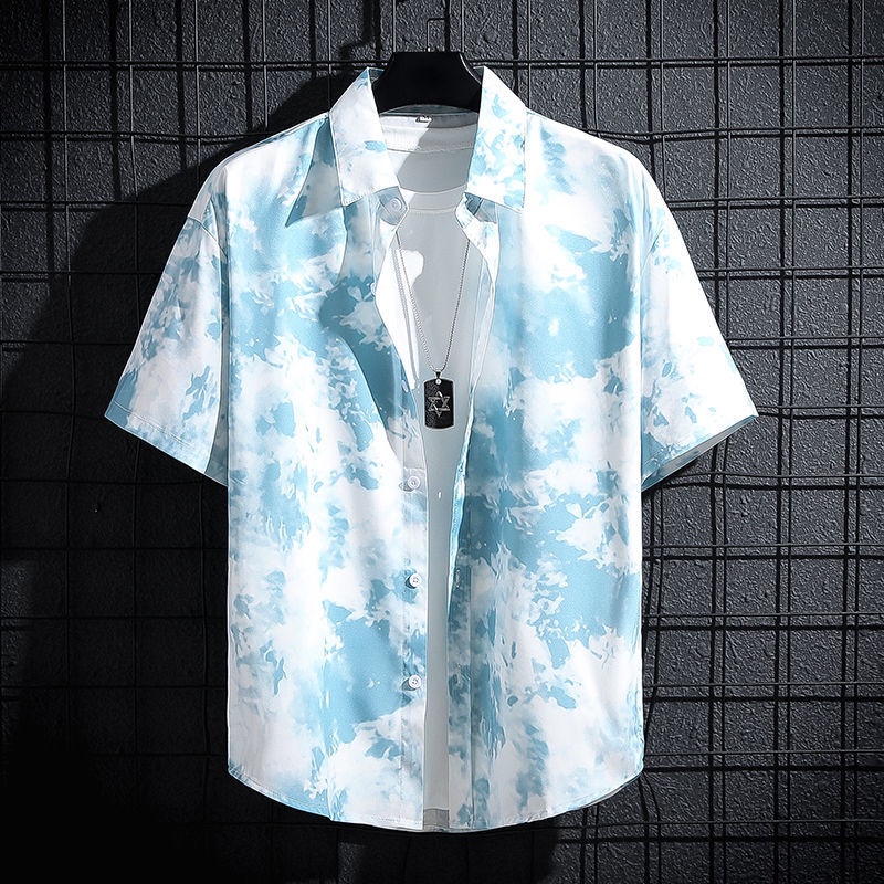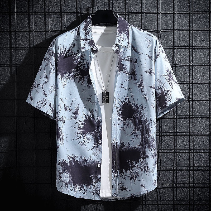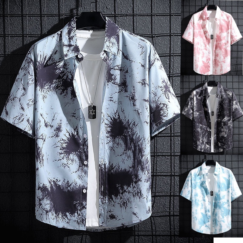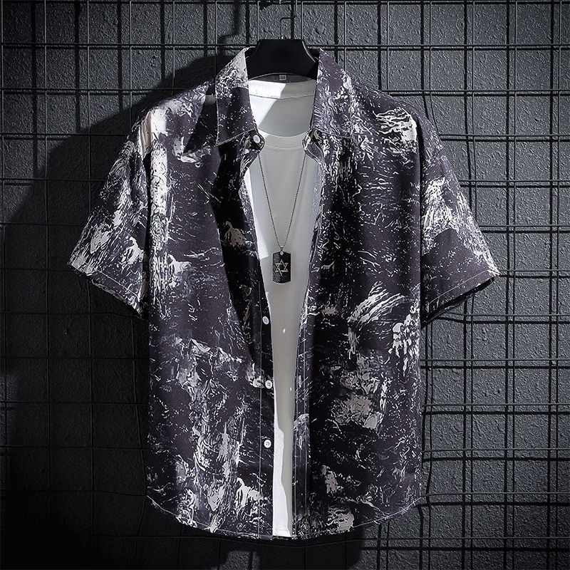 เทศกาลสงกรานต์ เสื้อเชิ้ต แขนสั้น พิมพ์ลาย สไตล์เกาหลี สําหรับผู้ชาย