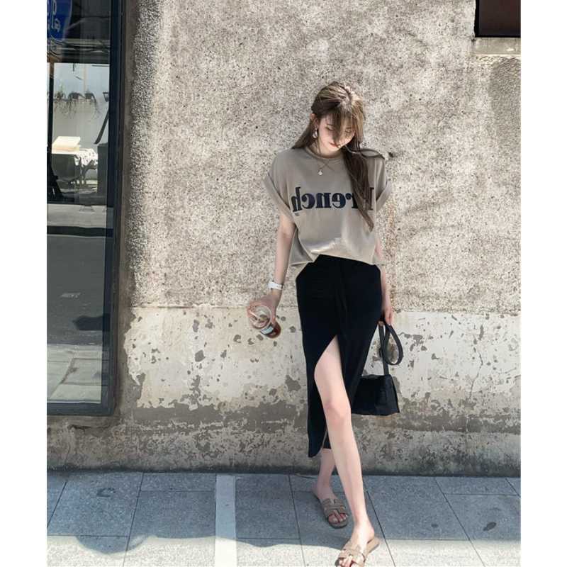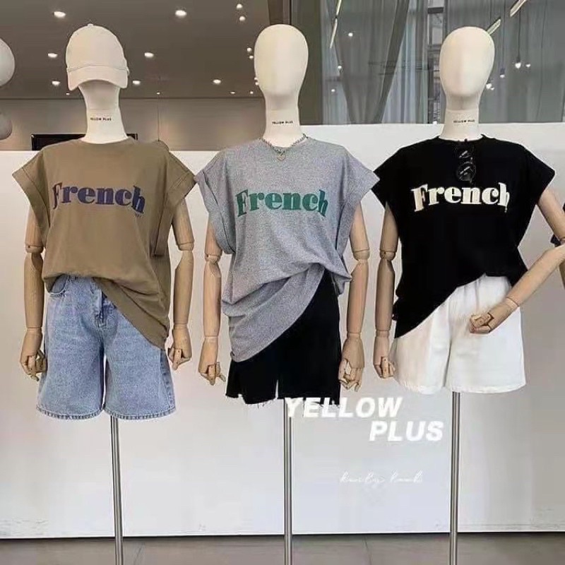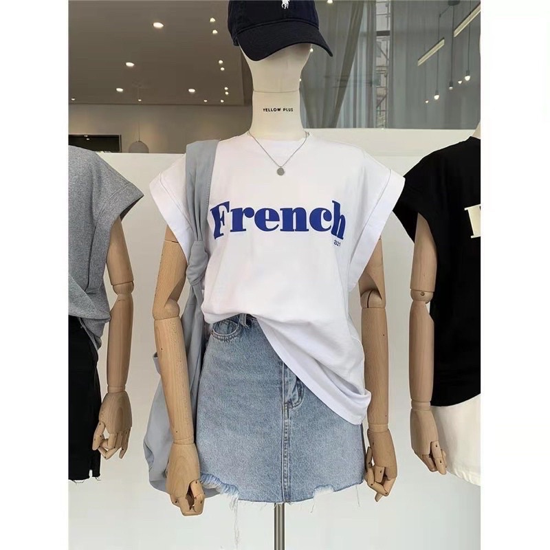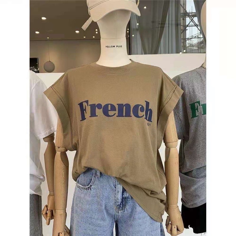 เสื้อแขนกุด โอเวอร์ไซส์ French ใส่สบาย แมทช์เสื้อผ้าง่าย