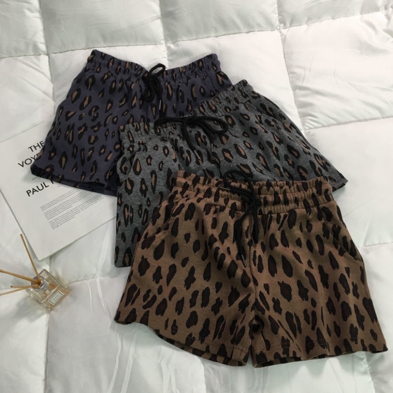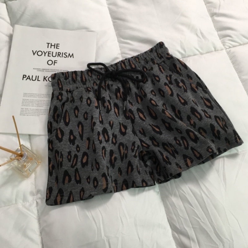 กางเกงขาสั้น ลายเสือดาวสีเทา มีเชือกผูกเอว กระเป๋าข้าง ราคาทุน หมดแล้วหมดเลยจ้า