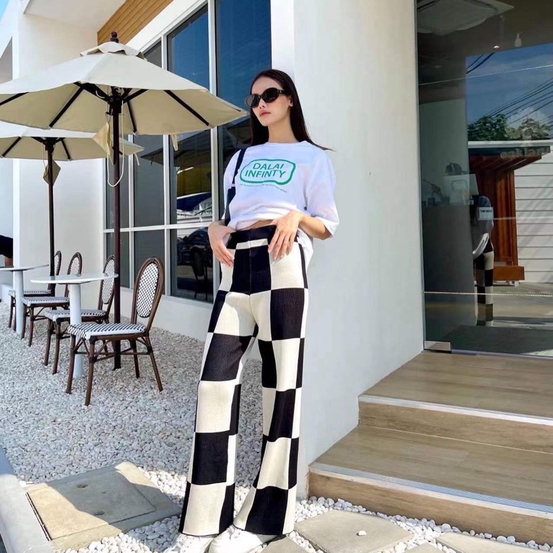 กางเกงขายาว ลายหมากรุก เงางาม ใส่สบาย