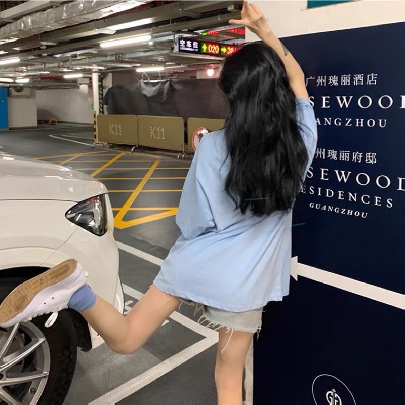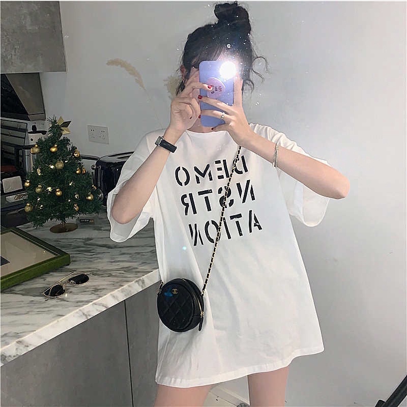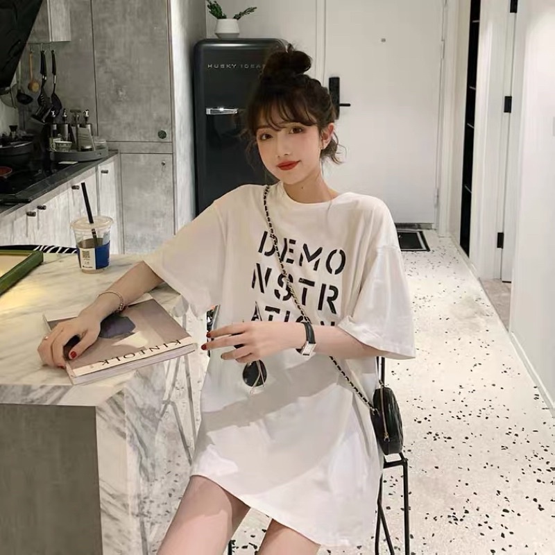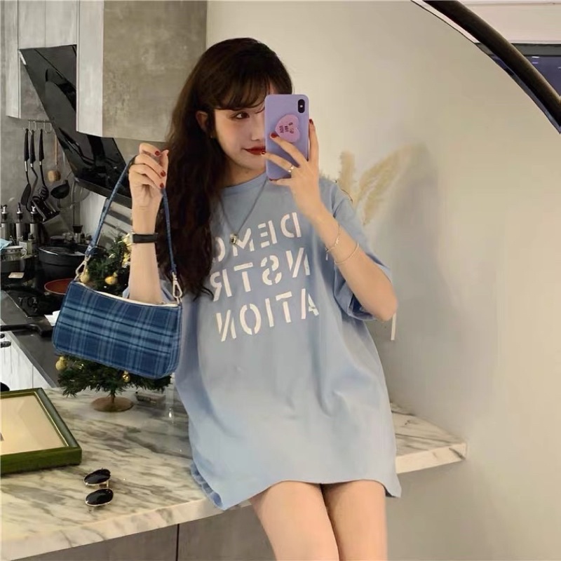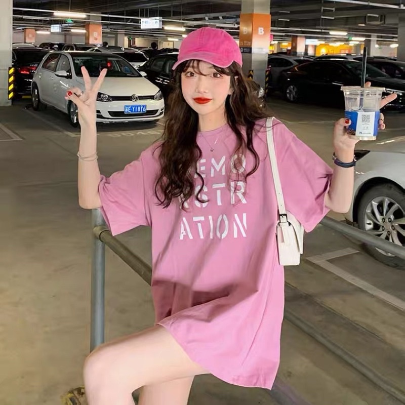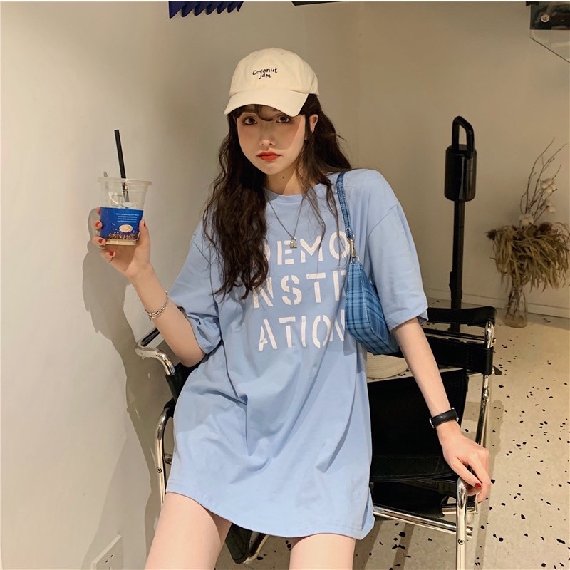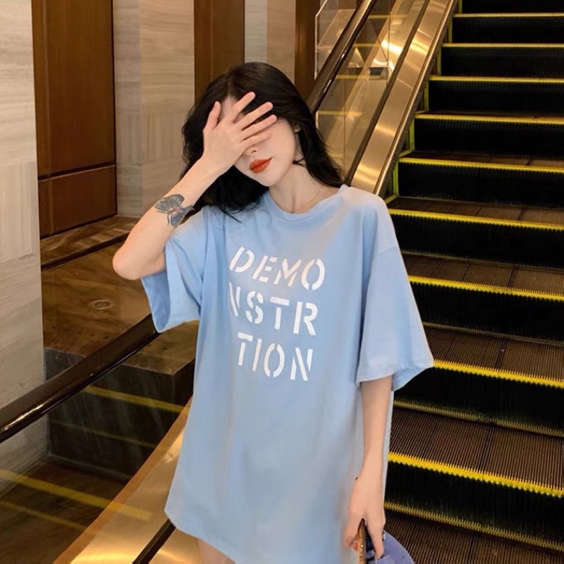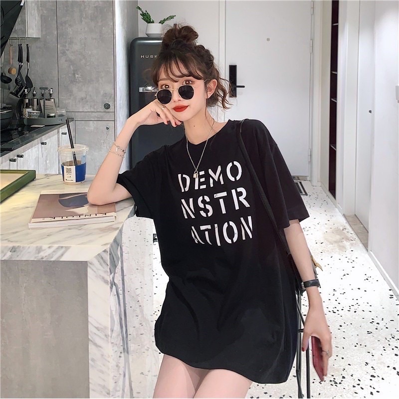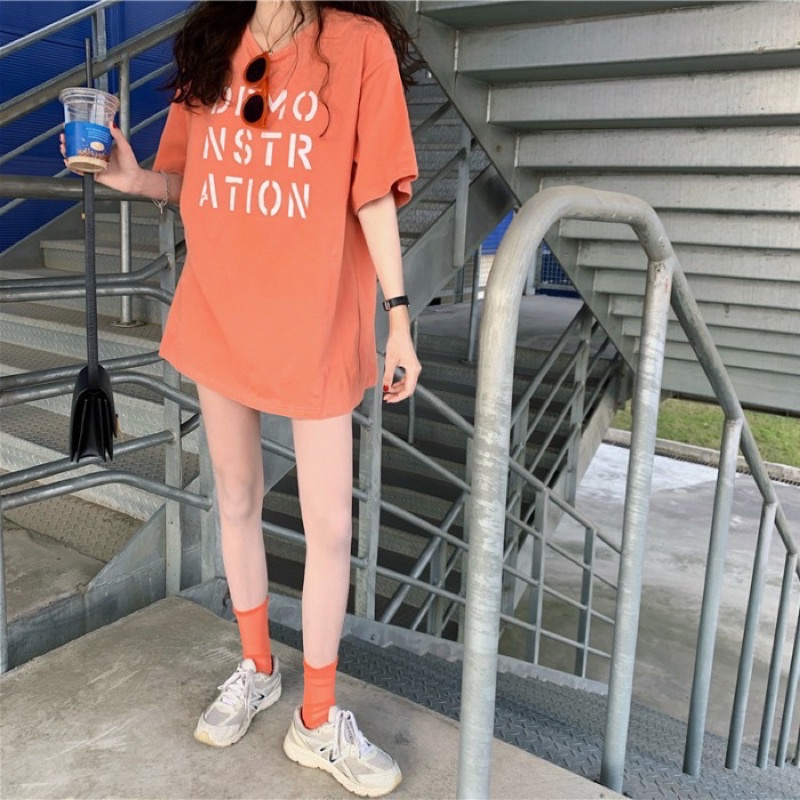 เสื้อยืดโอเวอร์ไซส์ ตัวยาว สีพื้น DEMO NSTR ATION น่ารัก ใส่สบาย สไตล์เกาหลี