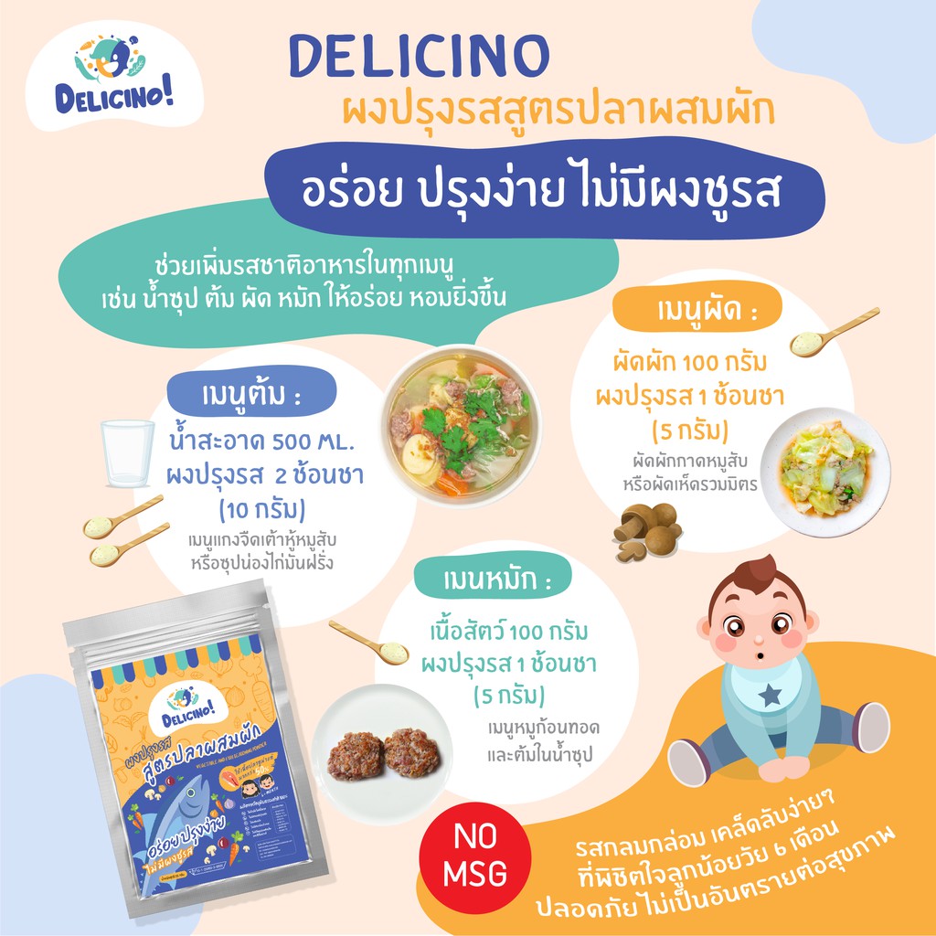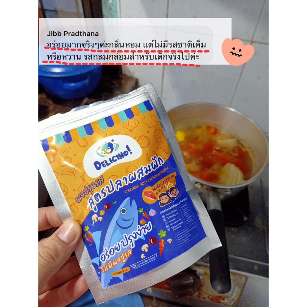 ผงปรุงรสสำหรับเด็ก ผงปรุงรสเด็ก 6 เดือนขึ้นไป สูตรปลาผสมผัก Delicino อร่อยปรุงง่าย ไม่มีผงชูรส ปลอดภัยมี อย. รับรอง