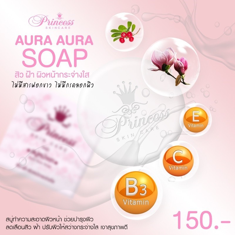 #สบู่หน้าเงา สบู่ล้างหน้าใส (Aura Aura Soap) by PSC ขนาด 80g. Princess Skin Care