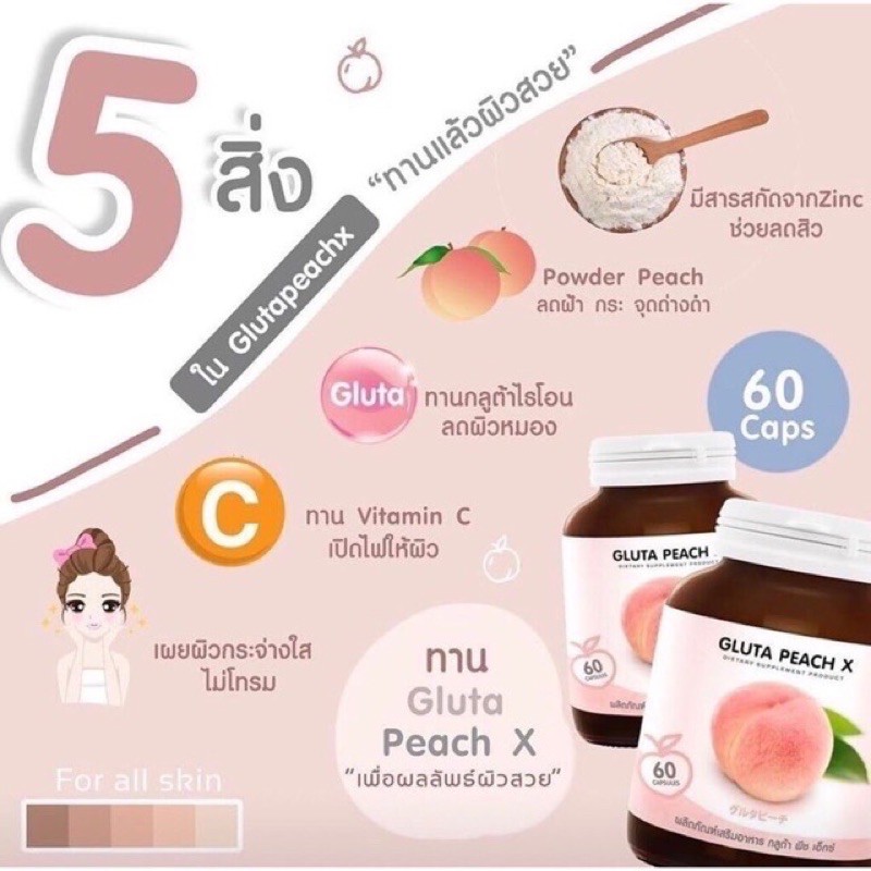 Gluta Peach X กลูต้าพีช อาหารเสริมเน้นบำรุงผิว เพื่อผิวขาวกระจ่างใส พร้อมลดสิว! ช่วยบำรุงผิวจากภายใน 💯