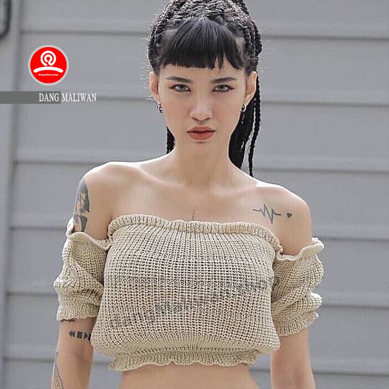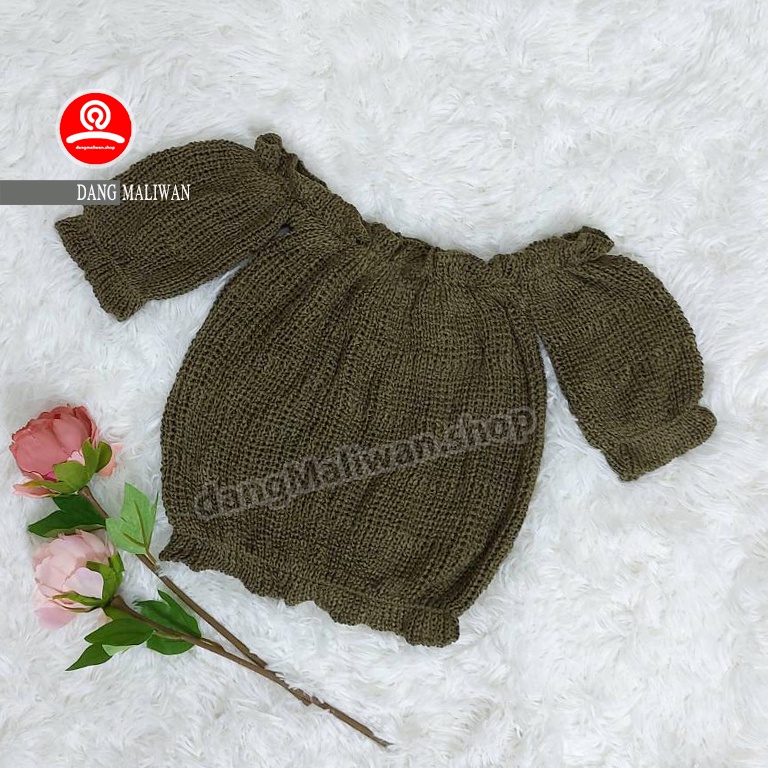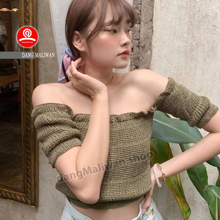 ไหมพรมถักปาดไหล่น่ารักมากๆผ้านุ่มใส่สบาย Dangmaliwanshop