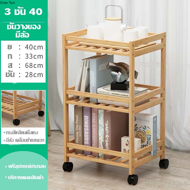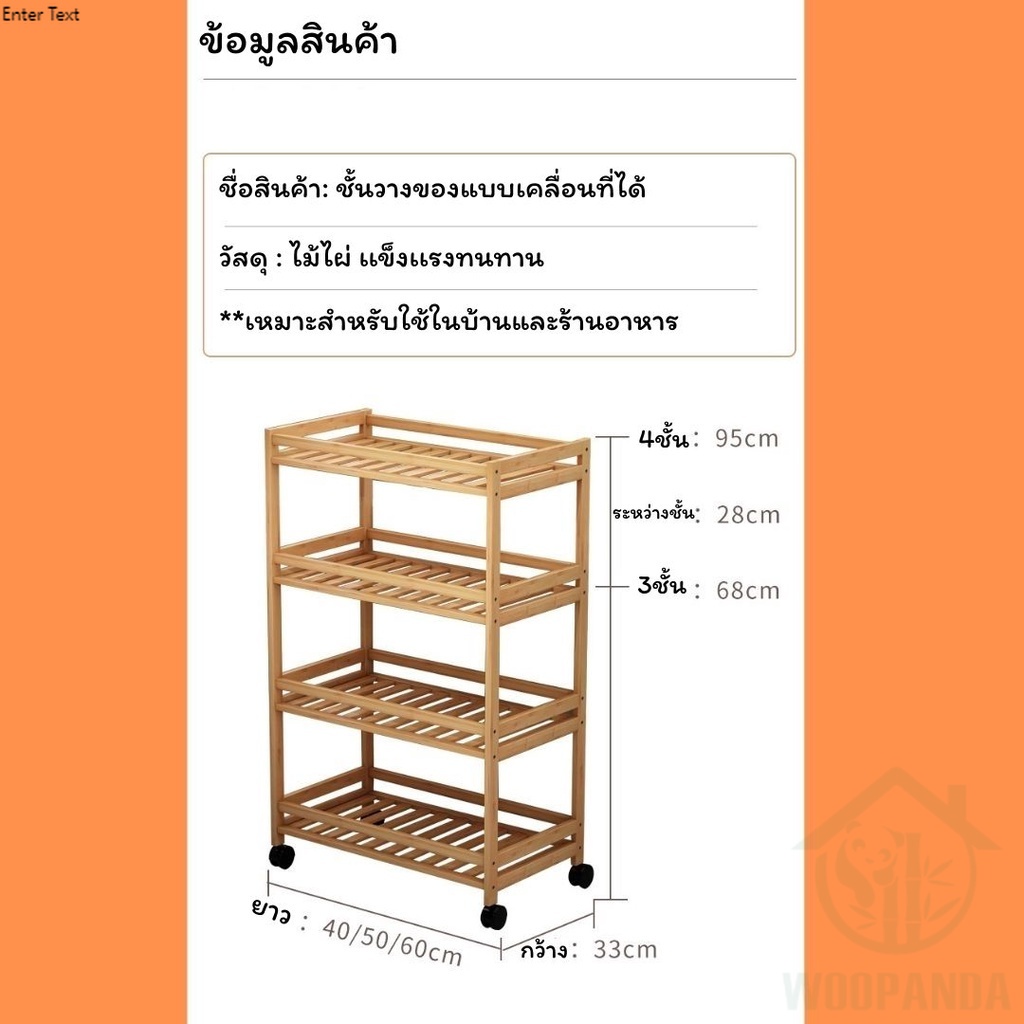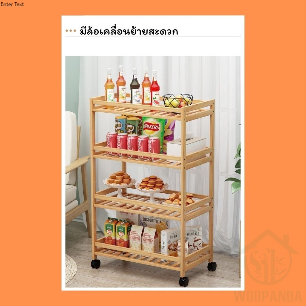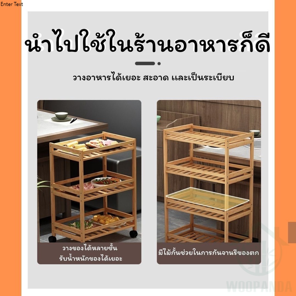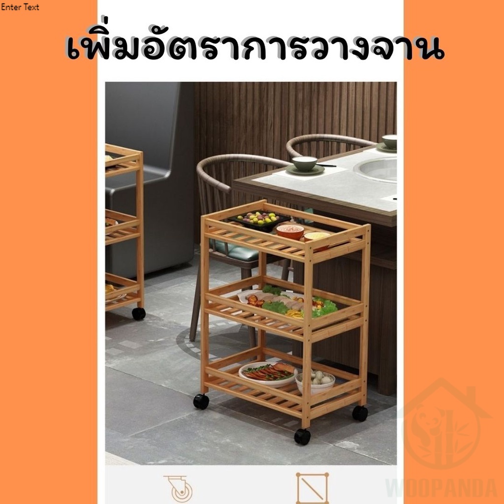 Woodopanda ชั้นวางไม้มีล้อ เคลื่อนที่ได้ ใช้วางหม้อชาบู ย้ายได้ ทำจากไม้ไผ่แท้ หนา แข็งแรง