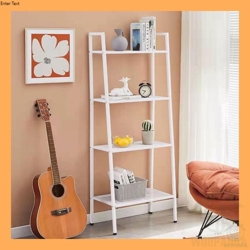 Woodpanda ชั้นวางของสแตนเลสเคลือบเซ รามิก อเนกประสงค์น ทรงสี่เหลี่ยมคางหมูรับน้ำหนักได้150kg สีขาวและดำ