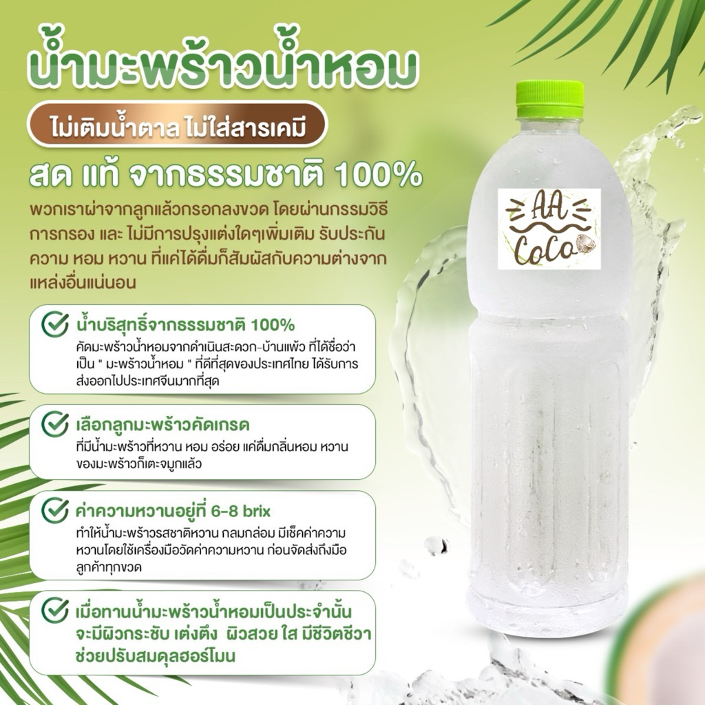 ✅ พร้อมส่ง(ขวด 1,000 ml) 💚น้ำมะพร้าวน้ำหอมแท้ 100% จากดำเนินสะดวก 💚