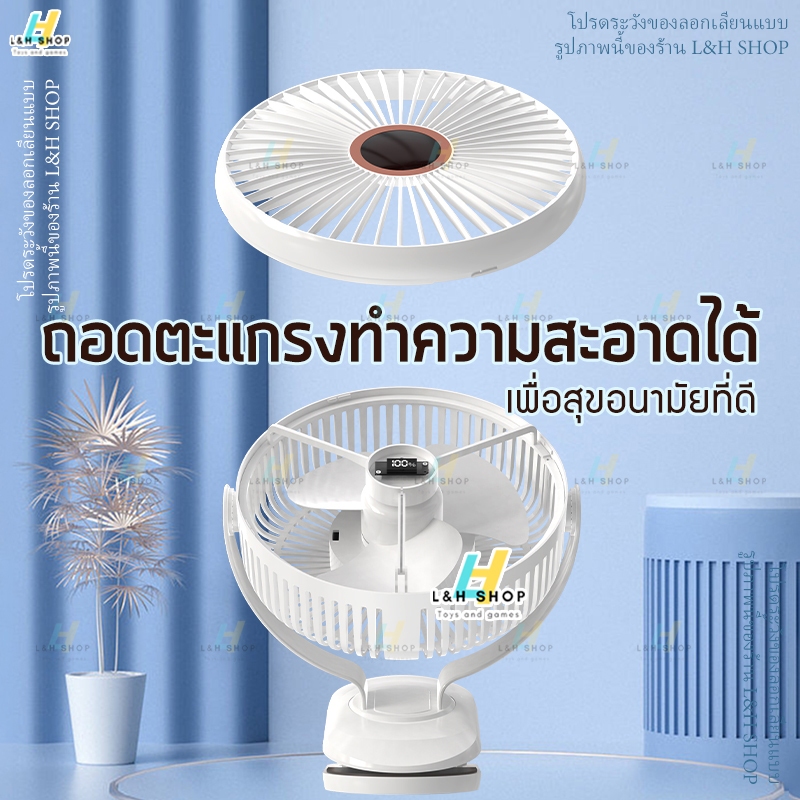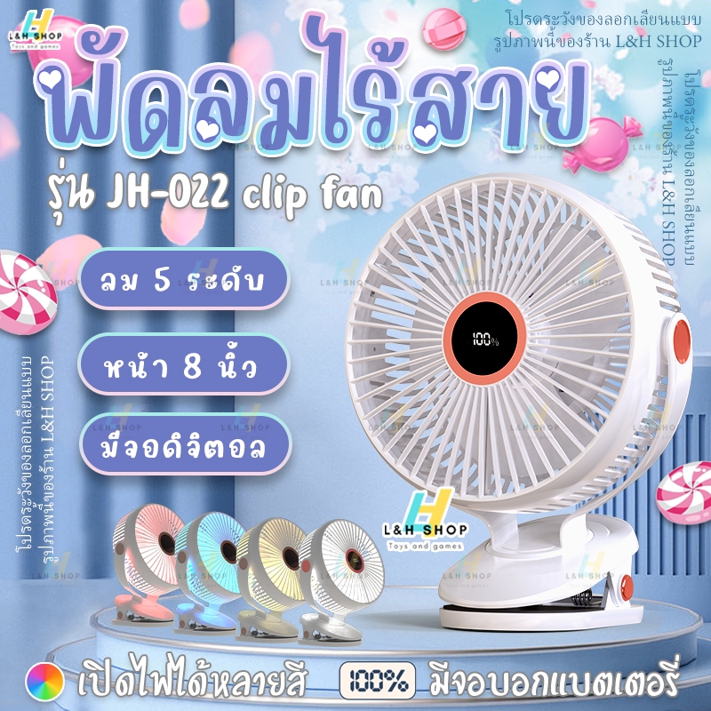 JH-022【 พัดลมไร้สาย 8 นิ้ว 】พัดลม หน้ากว้าง ลมแรง 5 ระดับ ชาร์จไฟ 10,000mAh 10ชั่วโมง คลิปหนีบ ตั้งโต๊ะ clip fan 8"