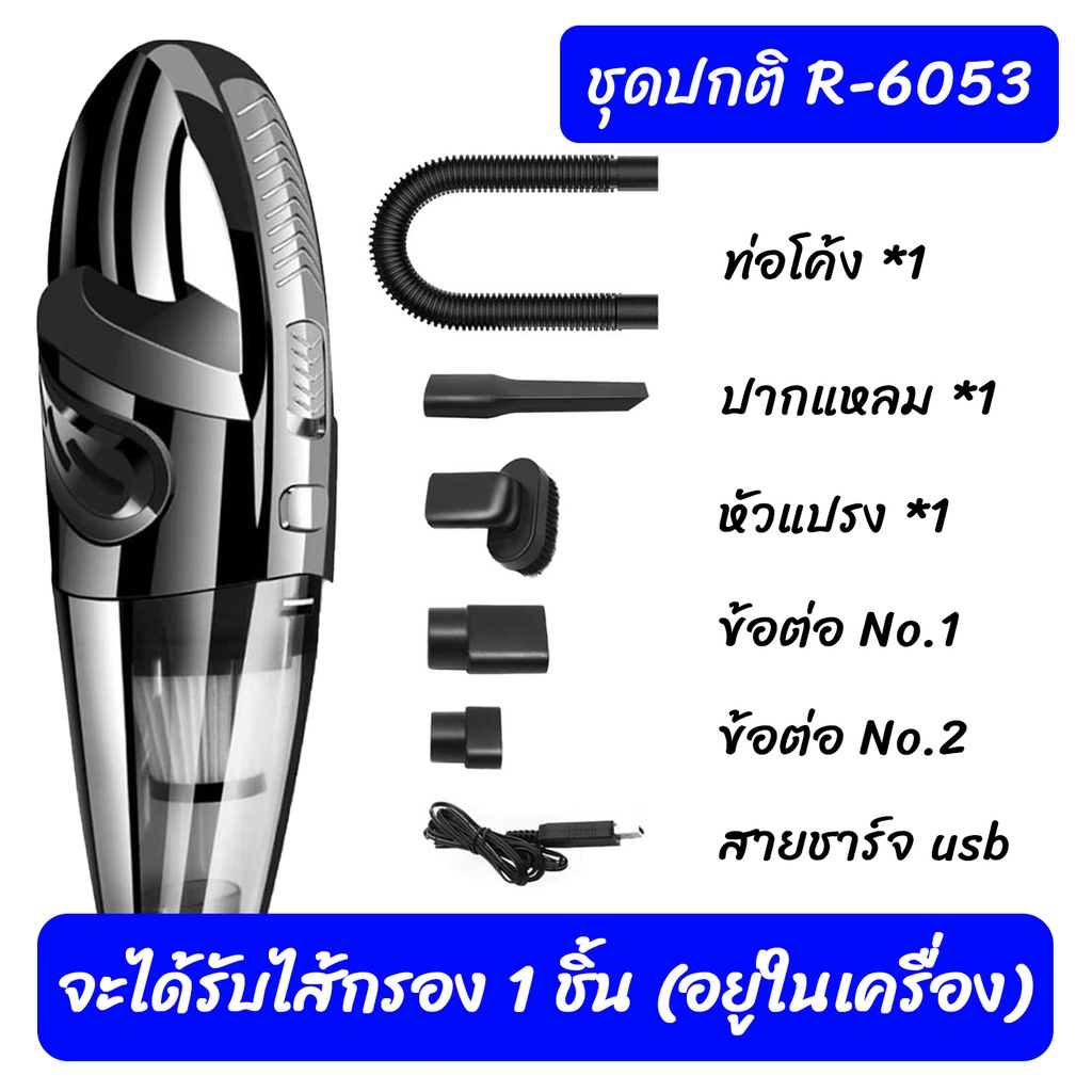 เครื่องดูดฝุ่น ไร้สาย รุ่น R-6053 120W Wet&Dry เอนกประสงค์ใช้ได้ทั้งในบ้านและในรถ ชาร์จไฟได้