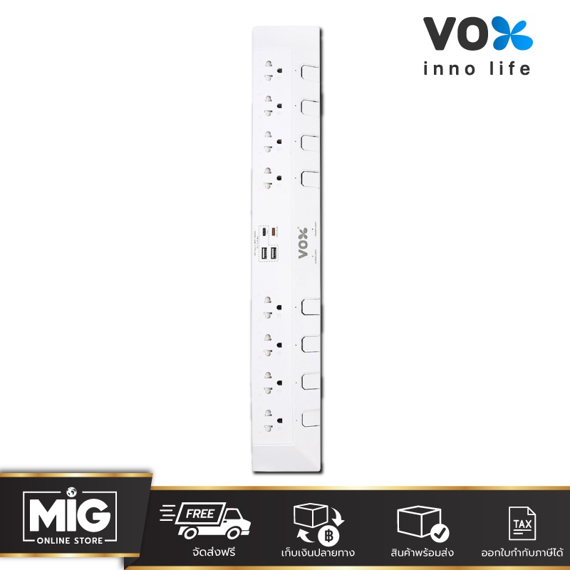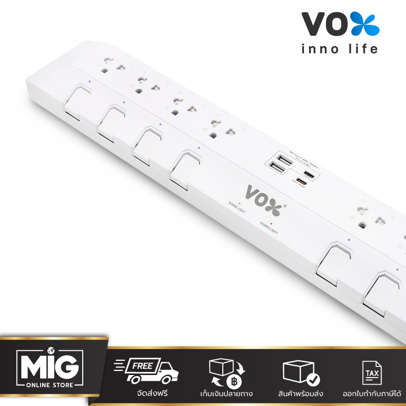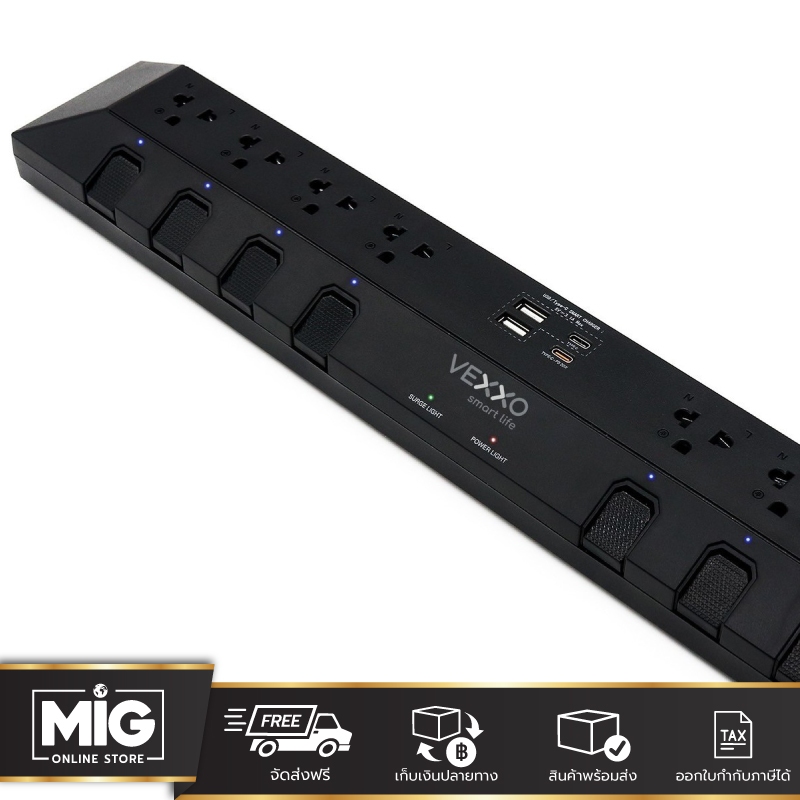 VEXXO Studio PowerStrip รุ่น DO-883 ปลั๊กกันไฟกระชาก16A/3500 W. 8ช่ อง 8สวิตซ์ /1Type C (PD 20W.)/2 USB+Type-C (3.1A Max)