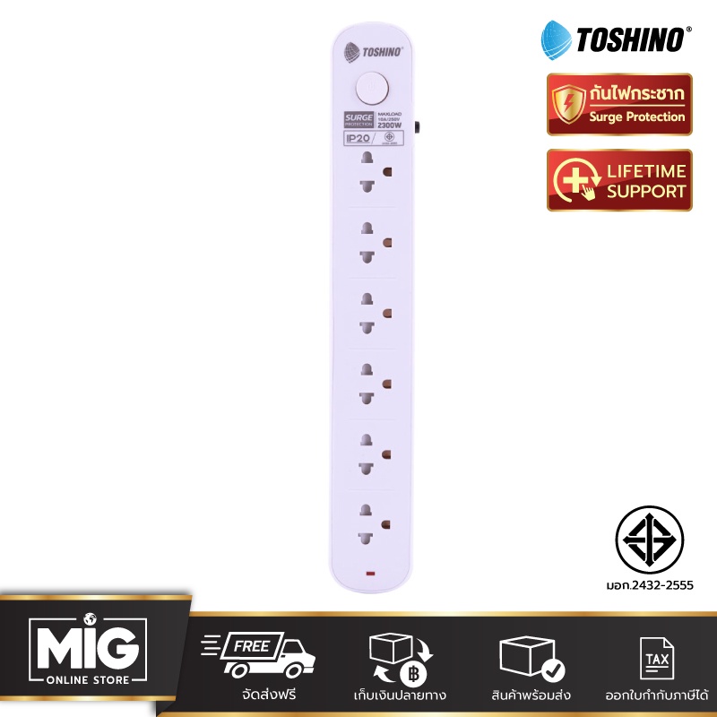 Toshino รางปลั๊กไฟ กันไฟกระชาก Surge Protection ปลั๊กพ่วง ปลั๊กไฟต่อพ่วง ปลั๊กไฟ มอก. CL-33,CL-43,CL-53,CL-63,ECO-32