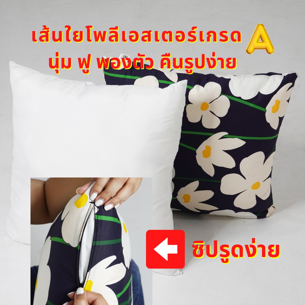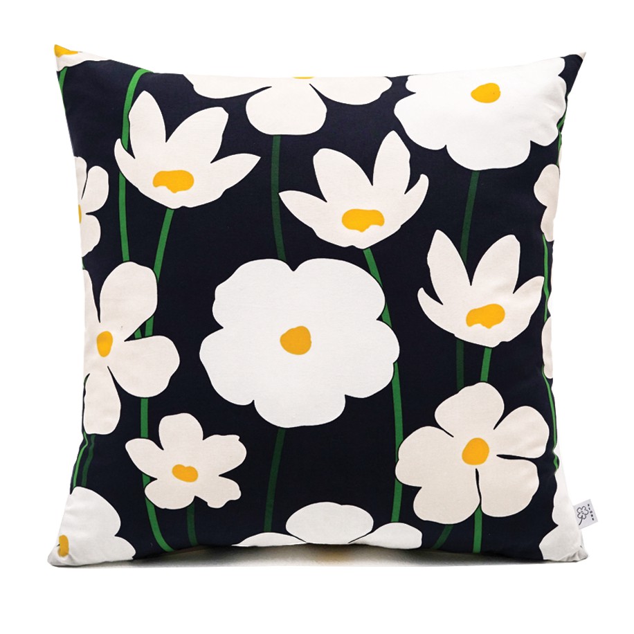 หมอนอิงพรีเมี่ยม Fiore ลาย White Daisy เกรด AAA ผ้าลายสีแน่น ไม่ก่อให้เกิดภูมิแพ้ ตกแต่งบ้าน หนุนพิง มินิมอล