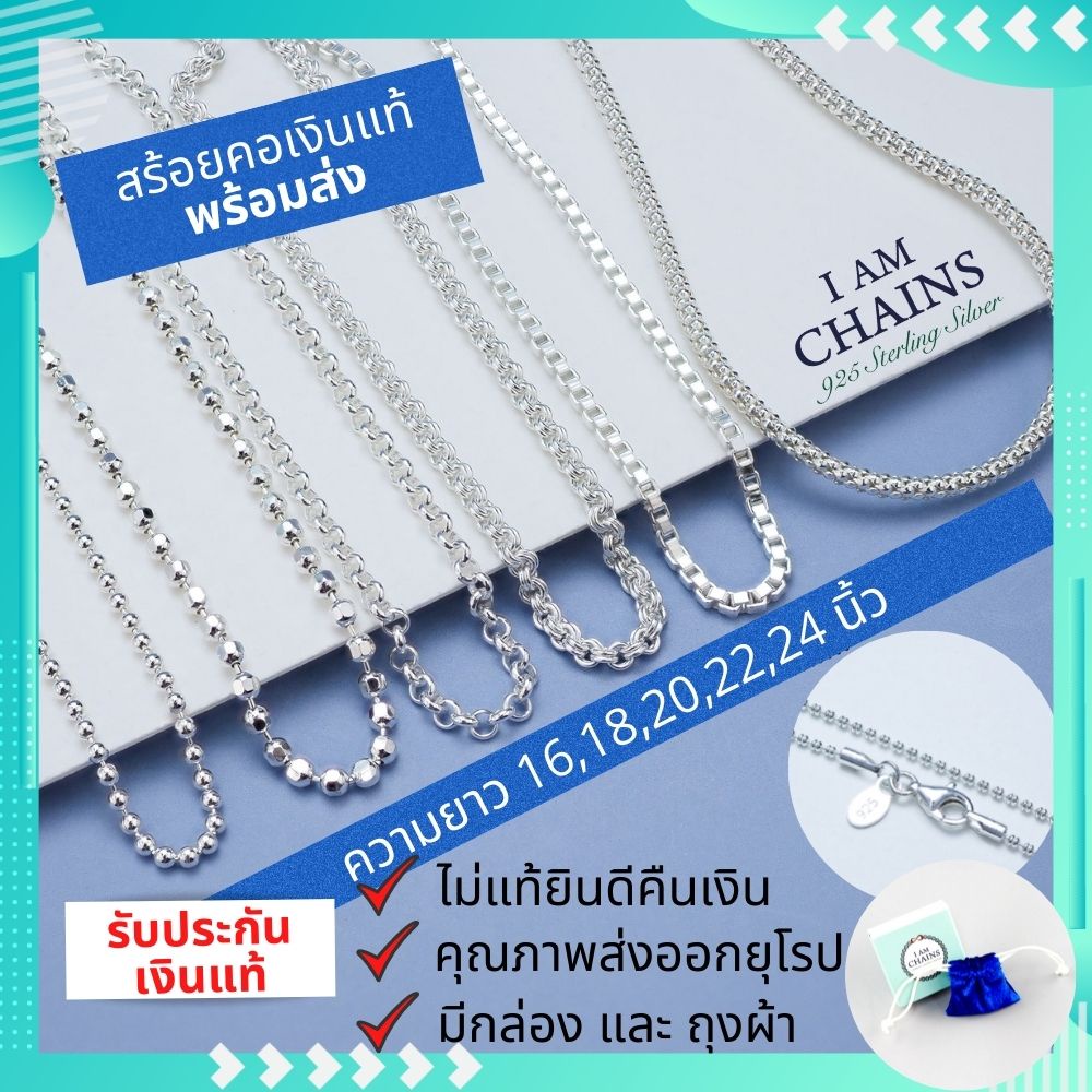 สร้อยเงินแท้ 925 พร้อมส่ง รับประกันเงินแท้ งานปราณีต สวย คุณภาพมาตรฐานส่งออก หลายลาย ความยาว16 นิ้ว ถึง 24 นิ้ว