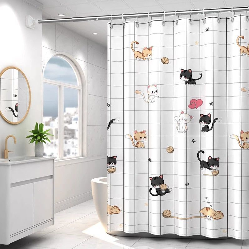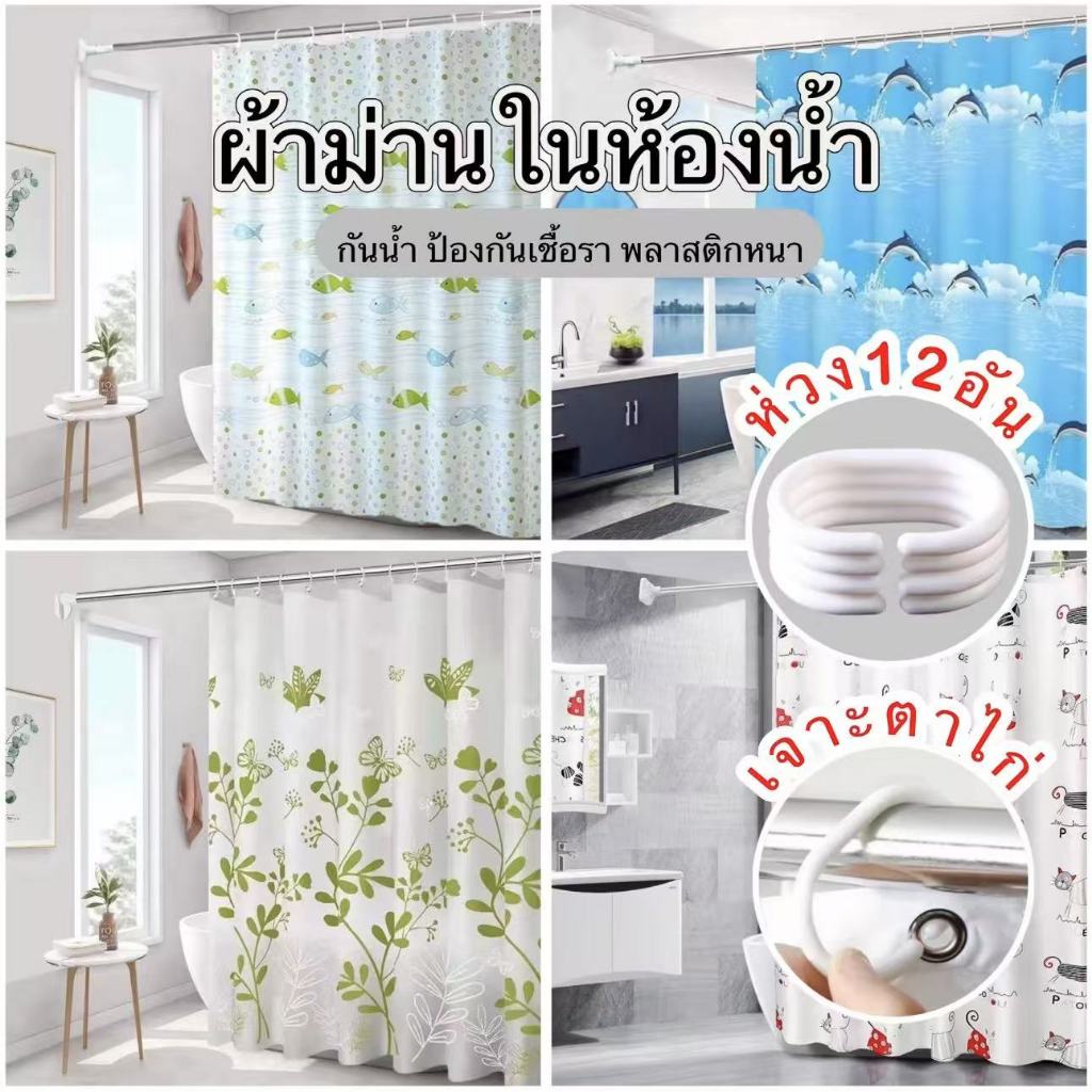 พร้อมส่ง🌲ม่านห้องน้ำ 180*180cm. ม่านพลาสติก ม่านกันน้ำ PEVA ป้องกันเชื้อรา ผ้าม่านในห้องน้ำ มีห่วงตะขอพลาสติก