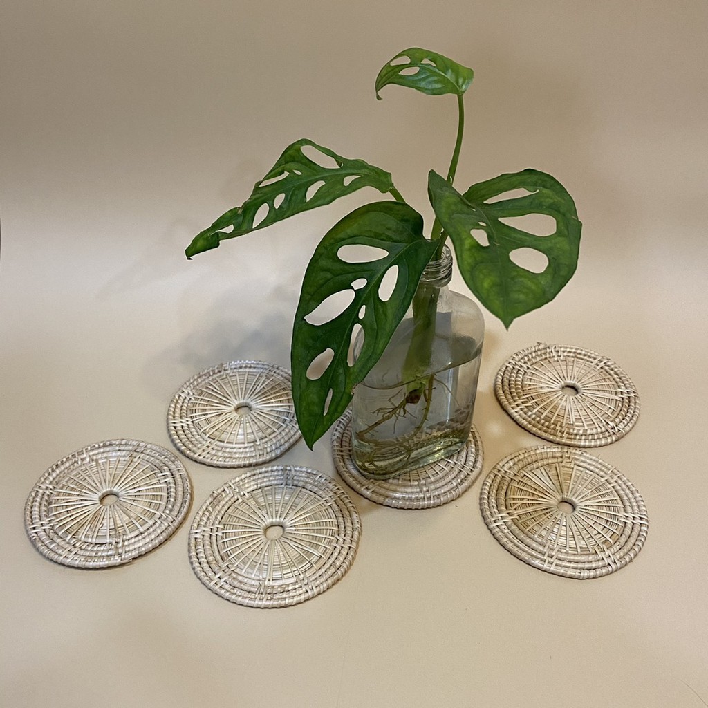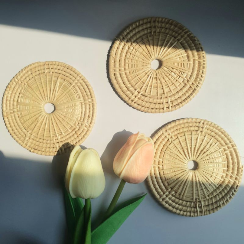 [พร้อมส่ง]จานรองแก้วหวายสาน แผ่นรองแจกัน พร้อบถ่ายภาพ